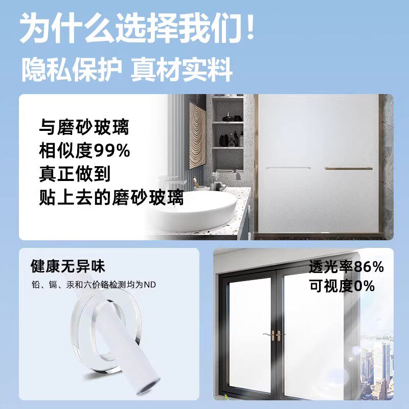 磨砂玻璃贴纸窗户透光不透人卫生间浴室防窥隔热不透明静电膜遮光