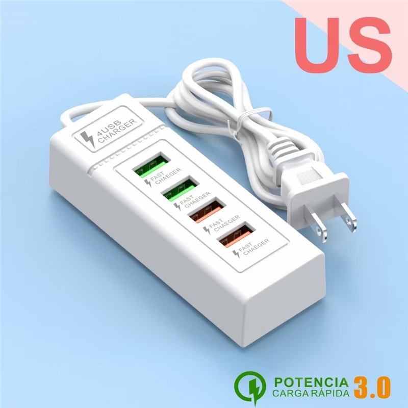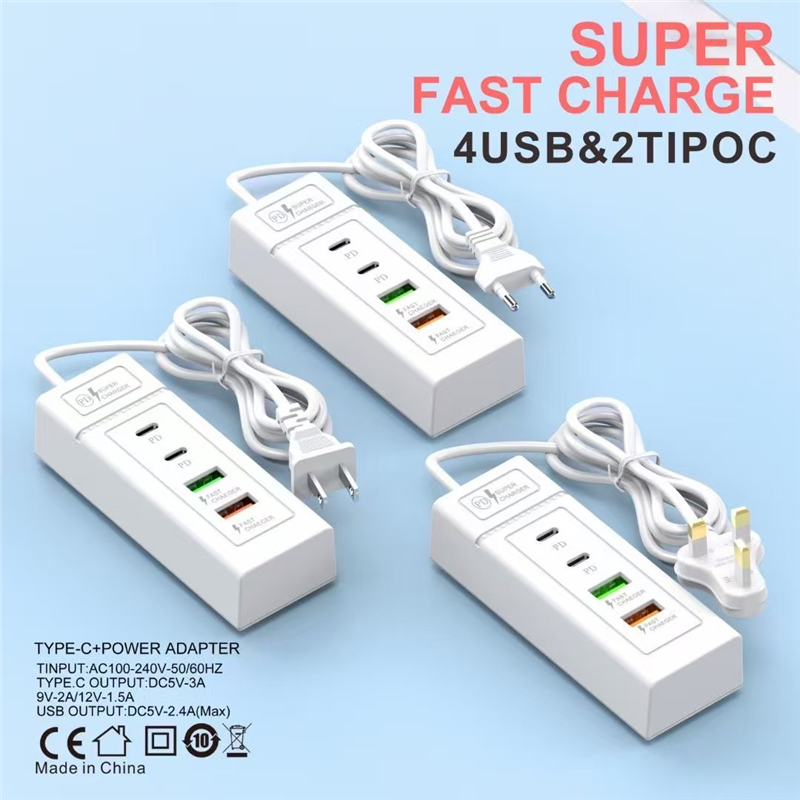 充电头多口usb插座充电多功能充电头智能30w快速usb+PD速充家用充电器排插4口2.4a充电站工作室充电头6a