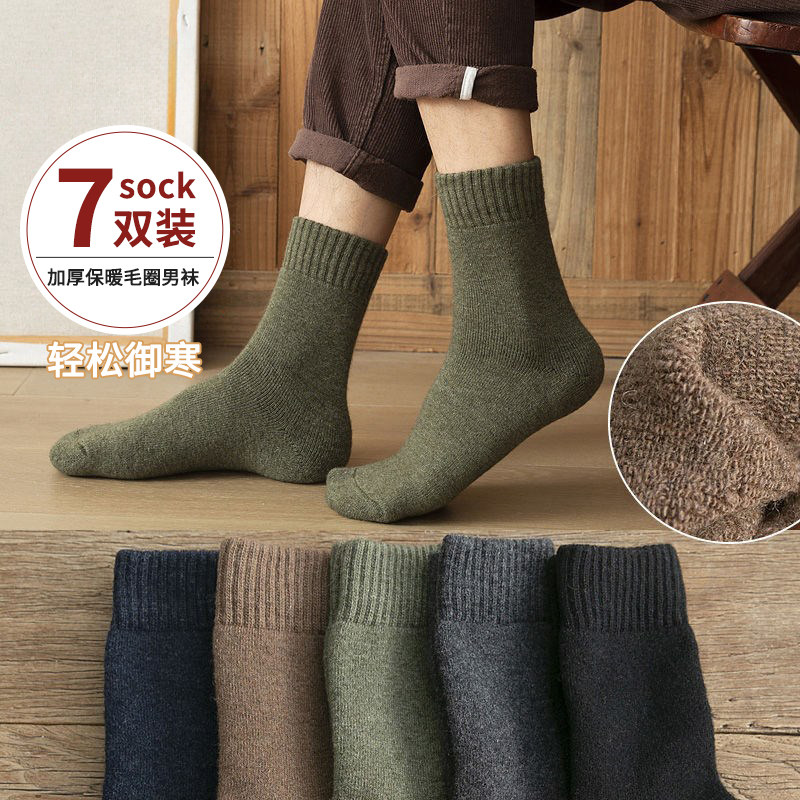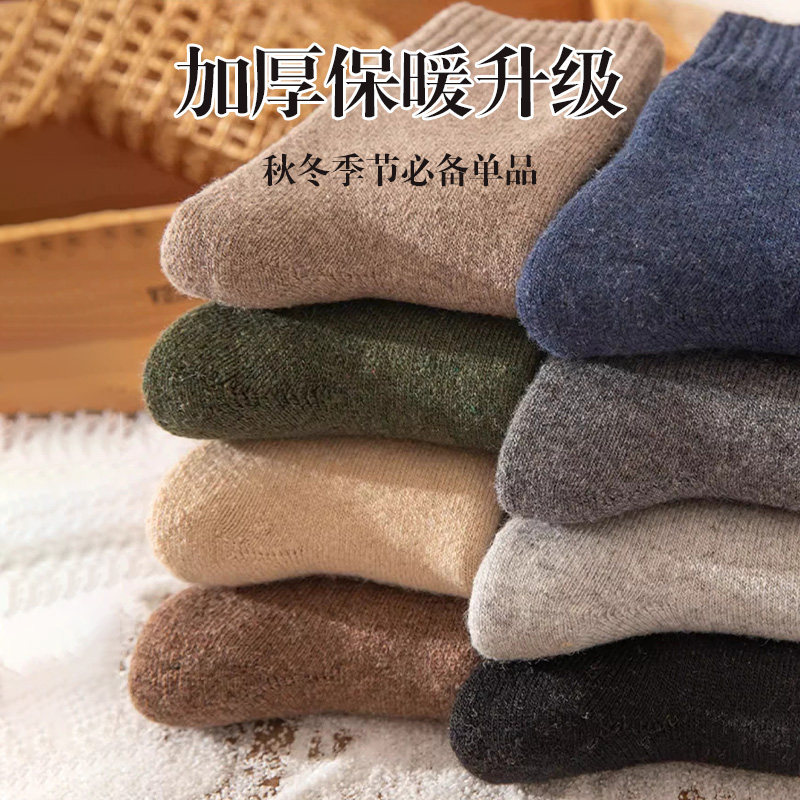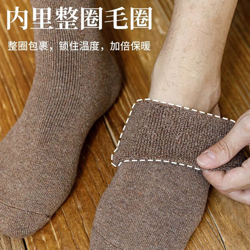 袜子男加厚加绒保暖毛圈袜中筒袜秋冬款男士袜子高筒长筒袜