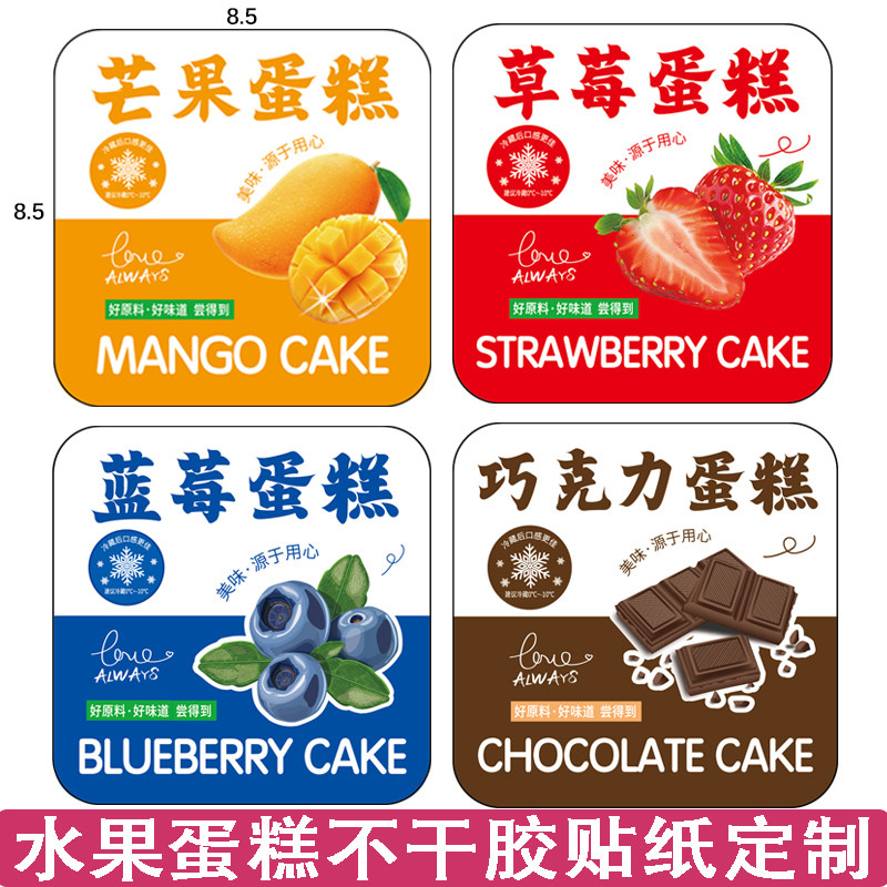 定制水果蛋糕腰封贴纸烘焙店提拉米苏芒果草莓千层包装logo封条不干胶标签手工甜品盒子围边长条封口贴定做