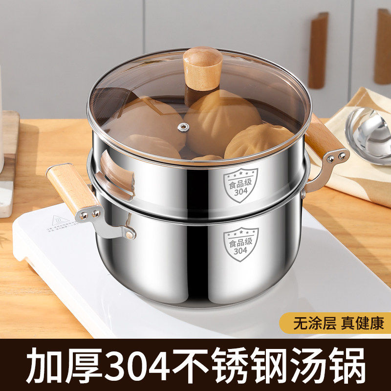 康巴赫304不锈钢汤锅加厚家用蒸锅煮粥锅炖锅双耳燃气灶电磁炉a22