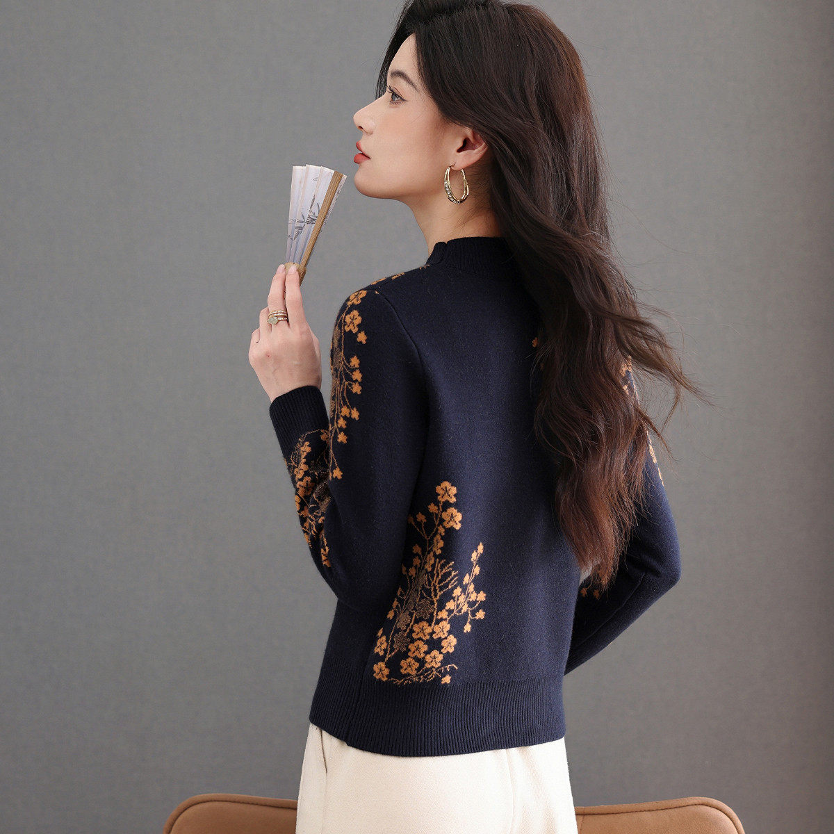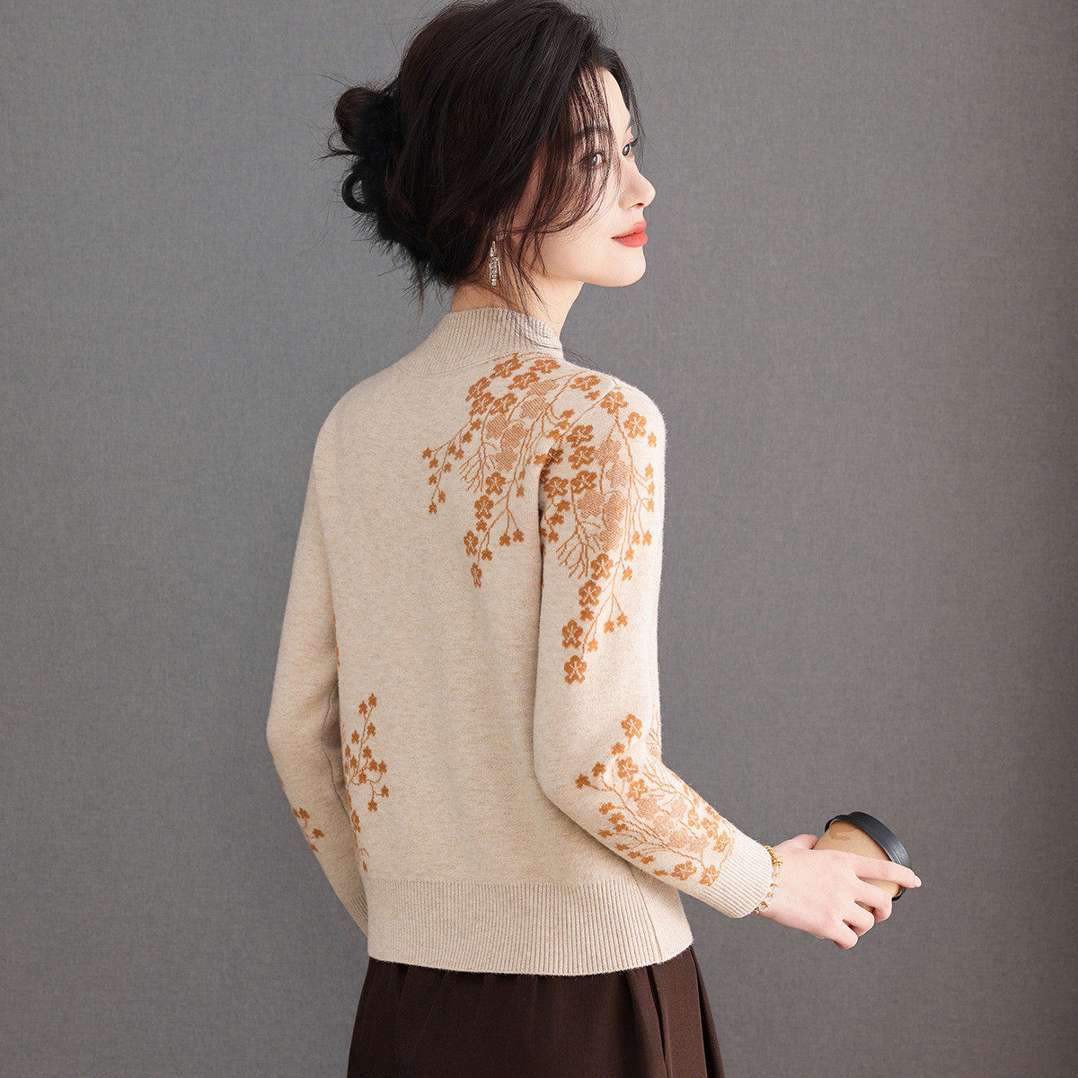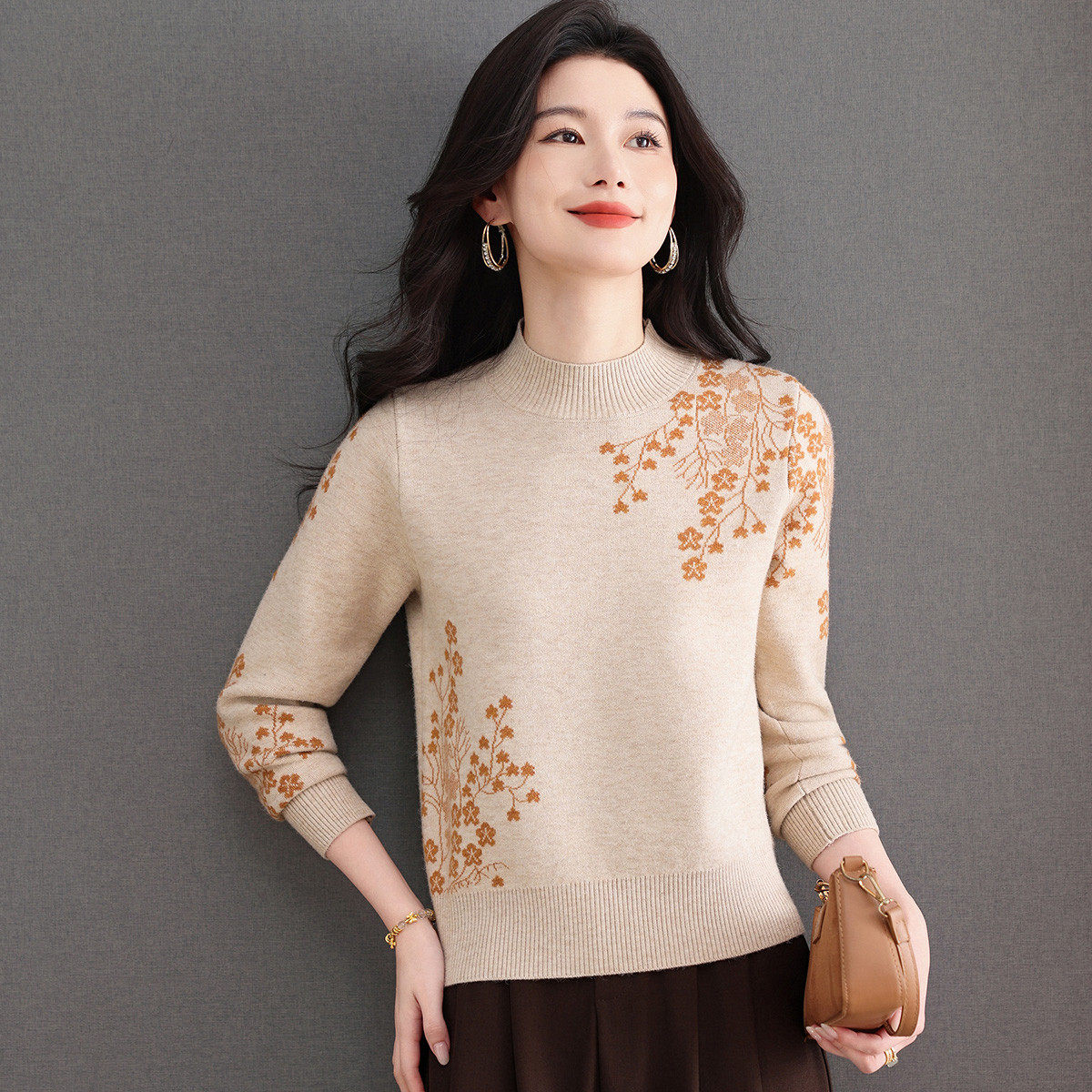 秋冬保暖时尚洋气花卉图案拼色款毛衣25年新品气质百搭针织衫女