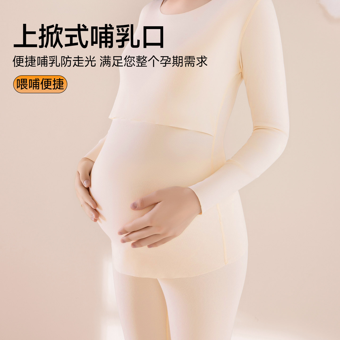 雅鹿孕妇秋衣秋裤套装保暖内衣女冬季加绒加厚哺乳产妇睡衣月子服