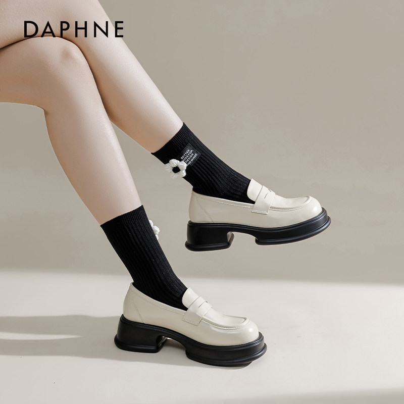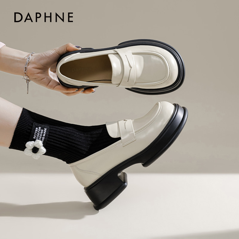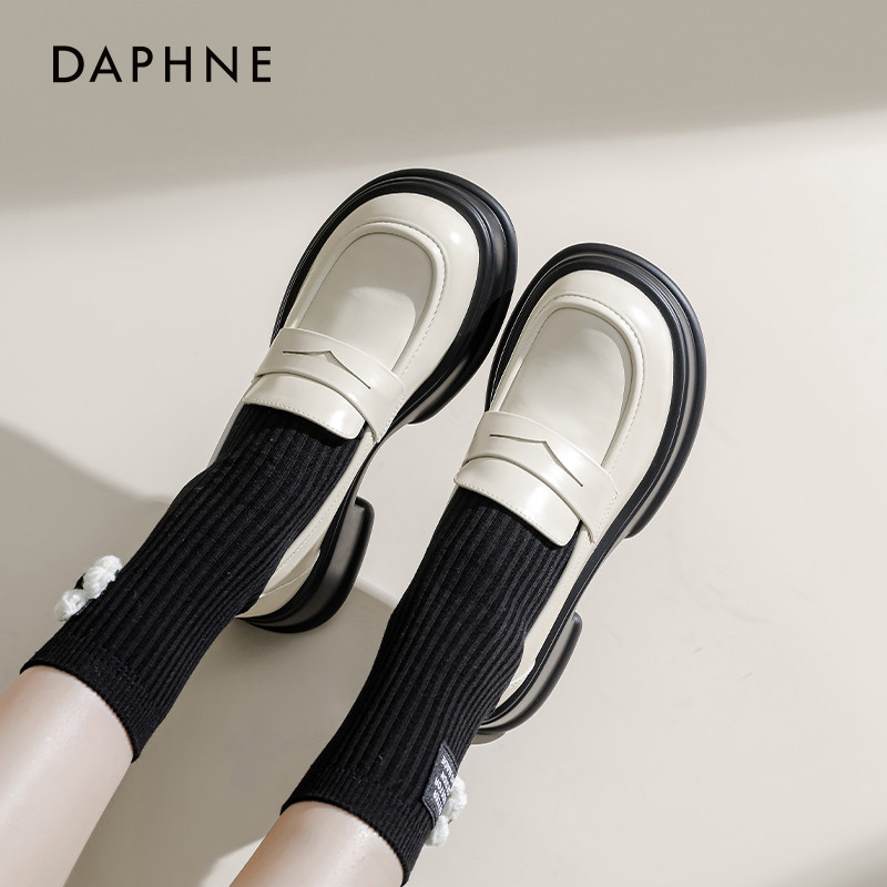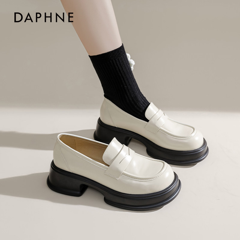 达芙妮厚底乐福鞋女2026新款夏季白色增高小皮鞋女复古软底制服鞋