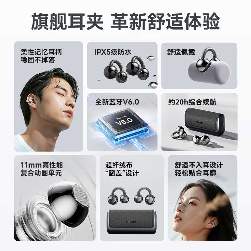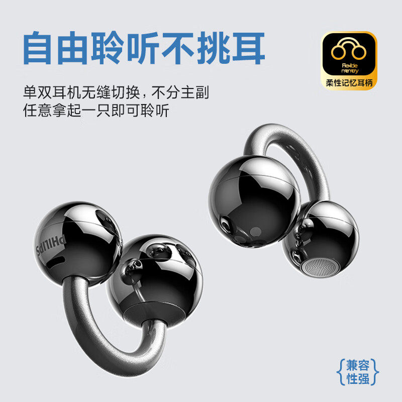 飞利浦小铃铛TAQ5020耳夹式无线蓝牙6.0耳机骑行运动佩戴舒适