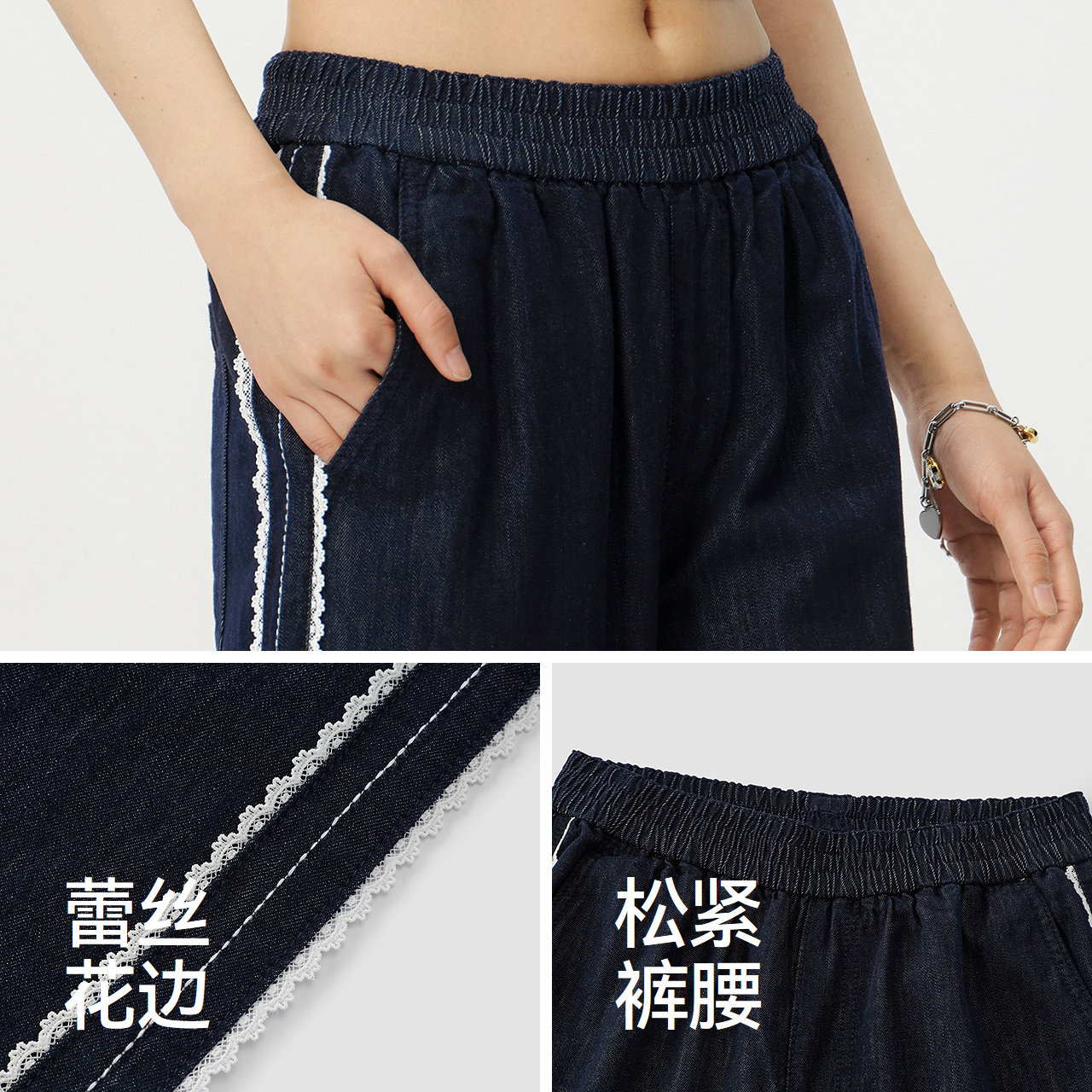 森柔|森马牛仔裤女夏蕾丝花边阔腿裤宽松2026新款气质慵懒拖地裤