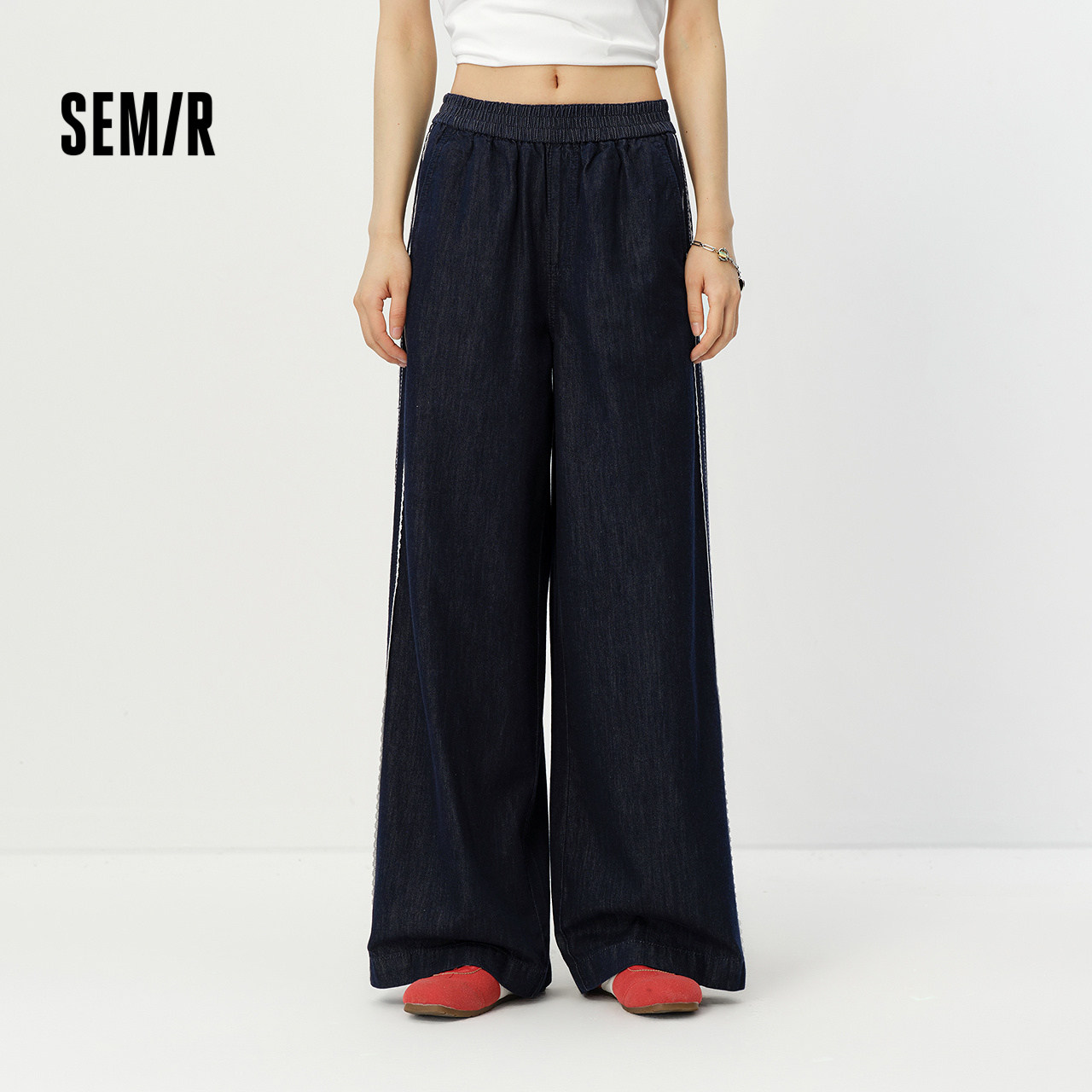 森马牛仔裤女春含莱赛尔阔腿裤2026新款复古港风遮肉显腿长拖地裤