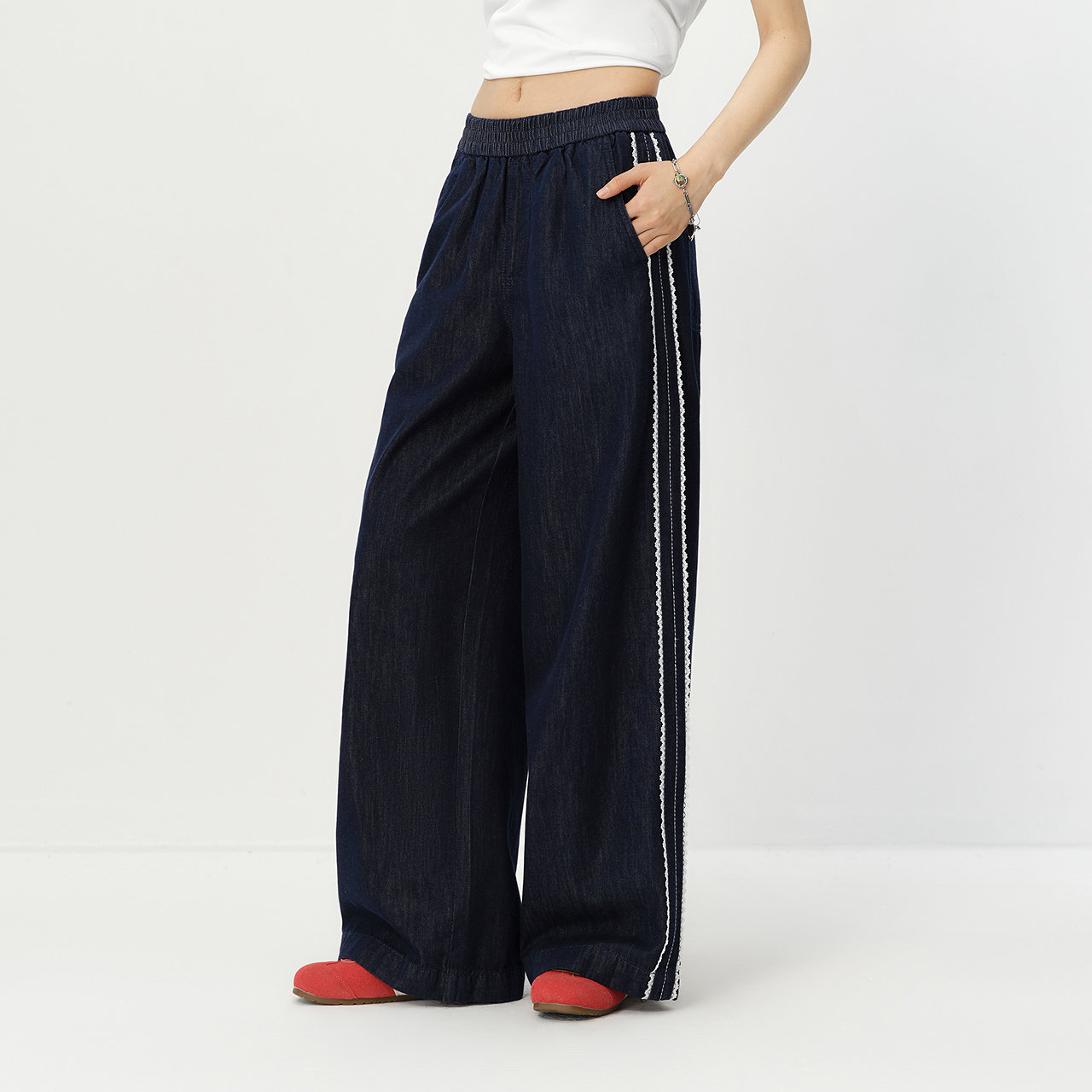 森柔牛仔|森马阔腿牛仔裤女2025秋冬白色牛仔裤简约女士高腰裤子