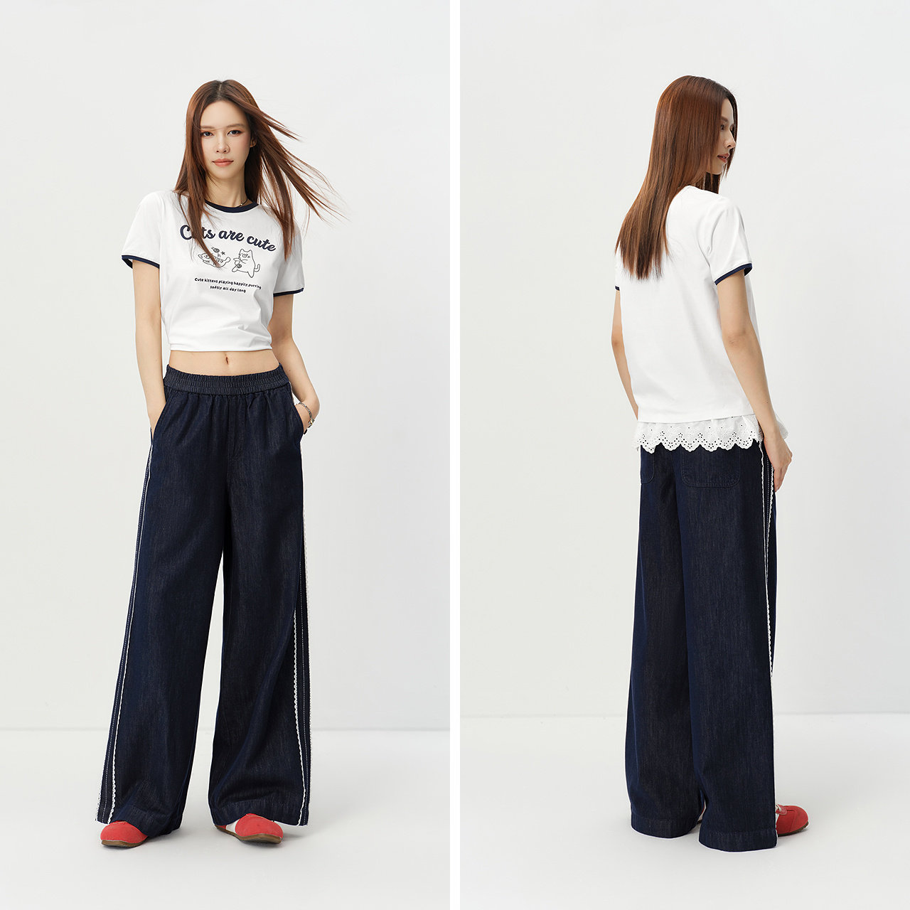 蕾丝花边增添气质 包容身材松紧腰