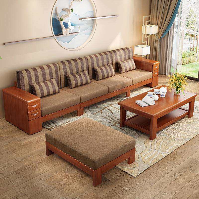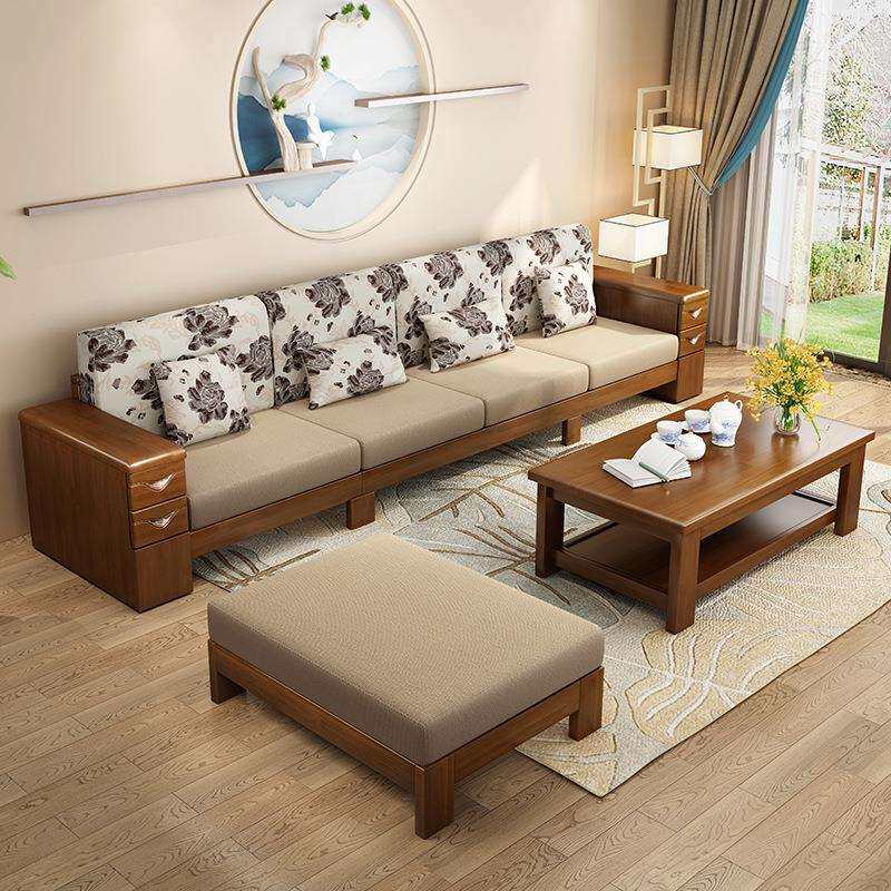 实木沙发组合可拆洗客厅整装橡胶木整装家具现代中式小户型沙发