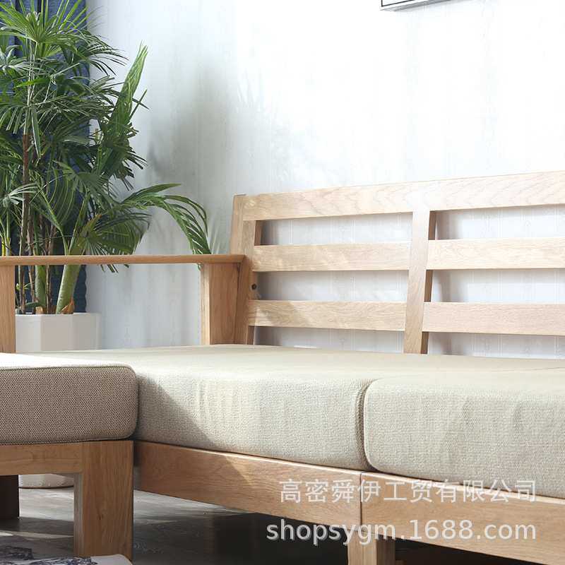 舜伊日式全实木沙发小户型橡木布艺转角沙发组合简约现代客厅家具