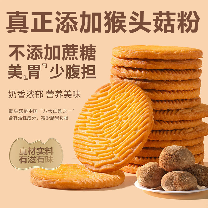 营养养胃猴头菇猴菇饼干曲奇酥性小饼干早餐代餐零食健康食品