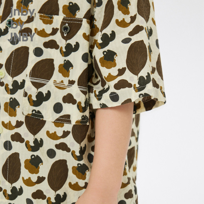 江南布衣童装春夏短袖衬衫翻领原创印花宽松男女童儿童jnbybyjnby