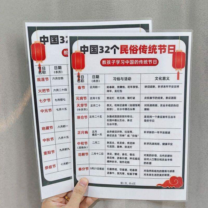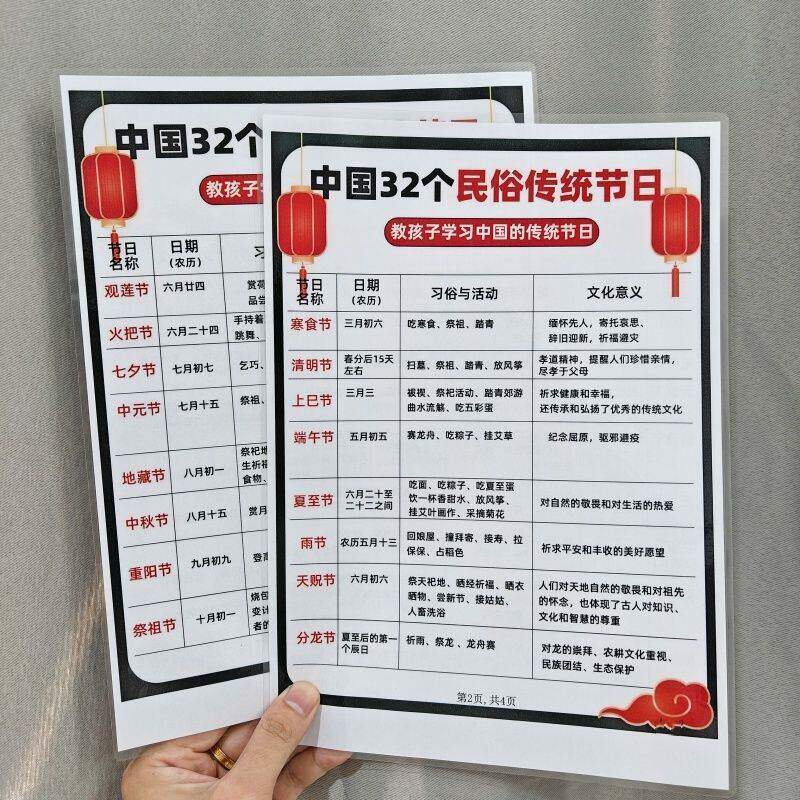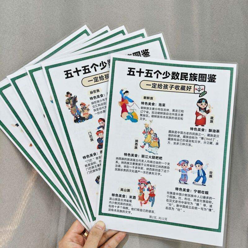 五十五个少数民族图鉴+32个民俗传统节日民族风俗特色挂图认知卡