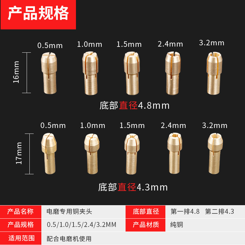 小电磨夹头配件转换铜夹心螺帽多功能打磨雕刻机工具配件夹芯锁帽