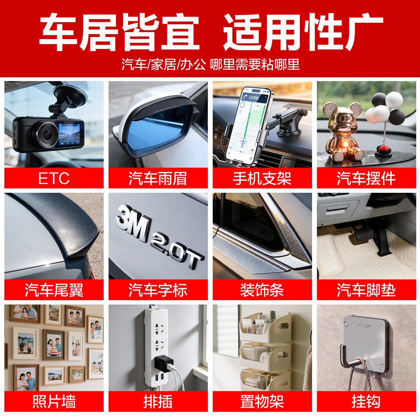 工业级粘力,防水耐温不残胶,车载家用通用