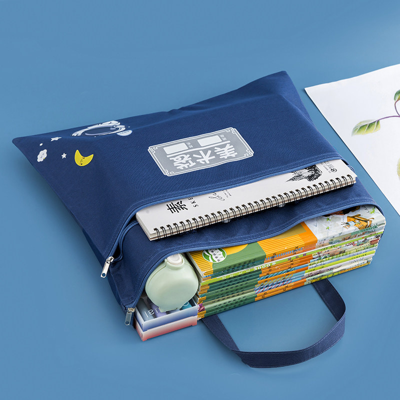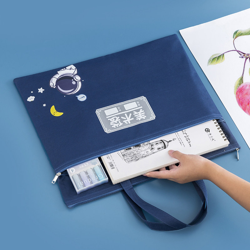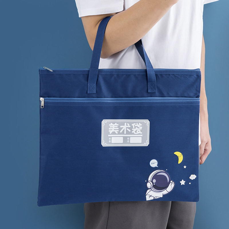 8K美术袋8开文件袋小学生手提袋书袋画画美术包学生专用美术工具袋带拉链双层大容量拎书卡通补习袋帆布书包