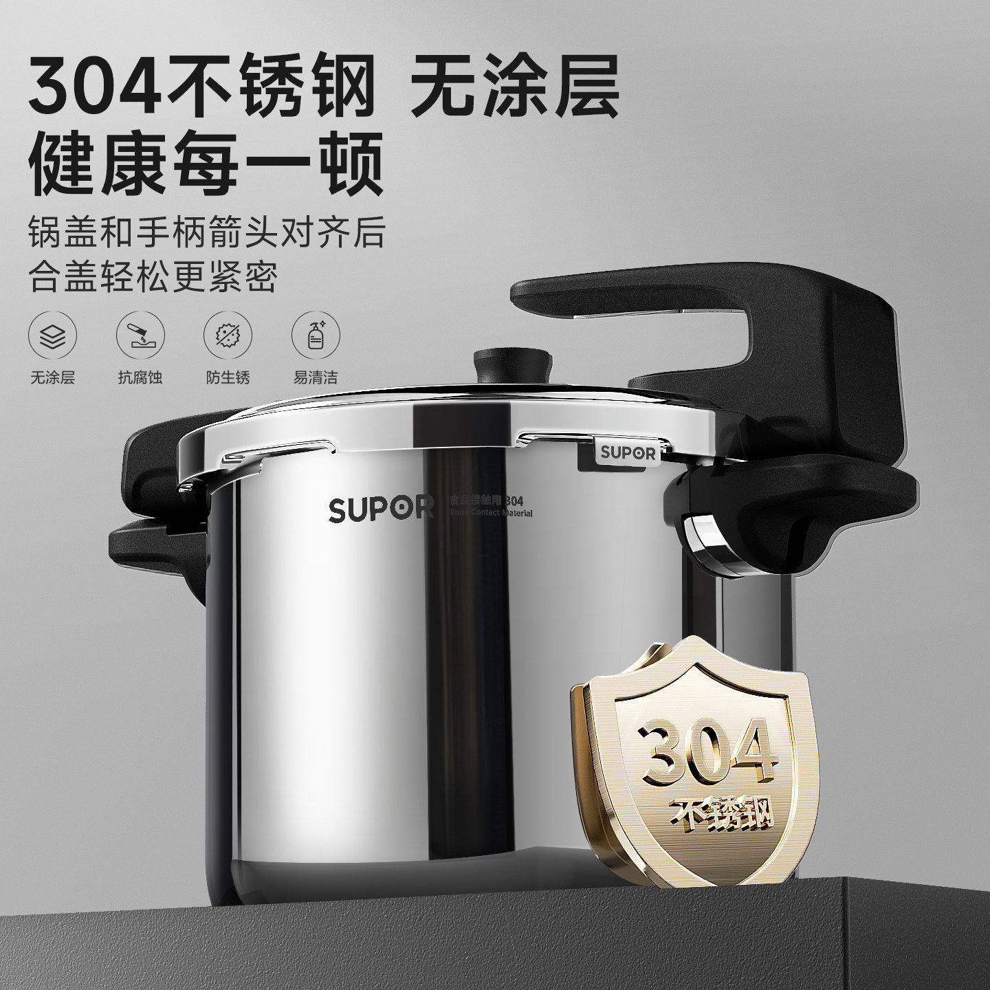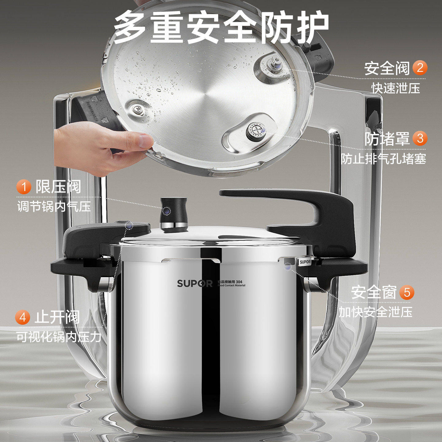 苏泊尔304不锈钢高压锅新款防爆家用燃气电磁炉多功能压力锅TJ
