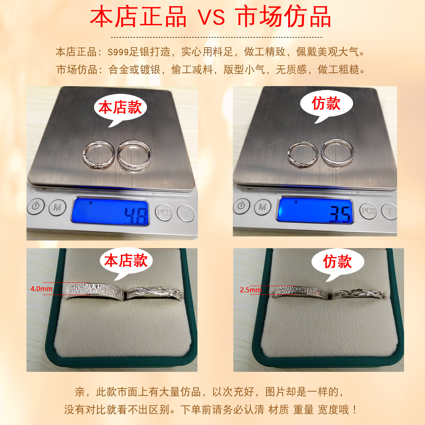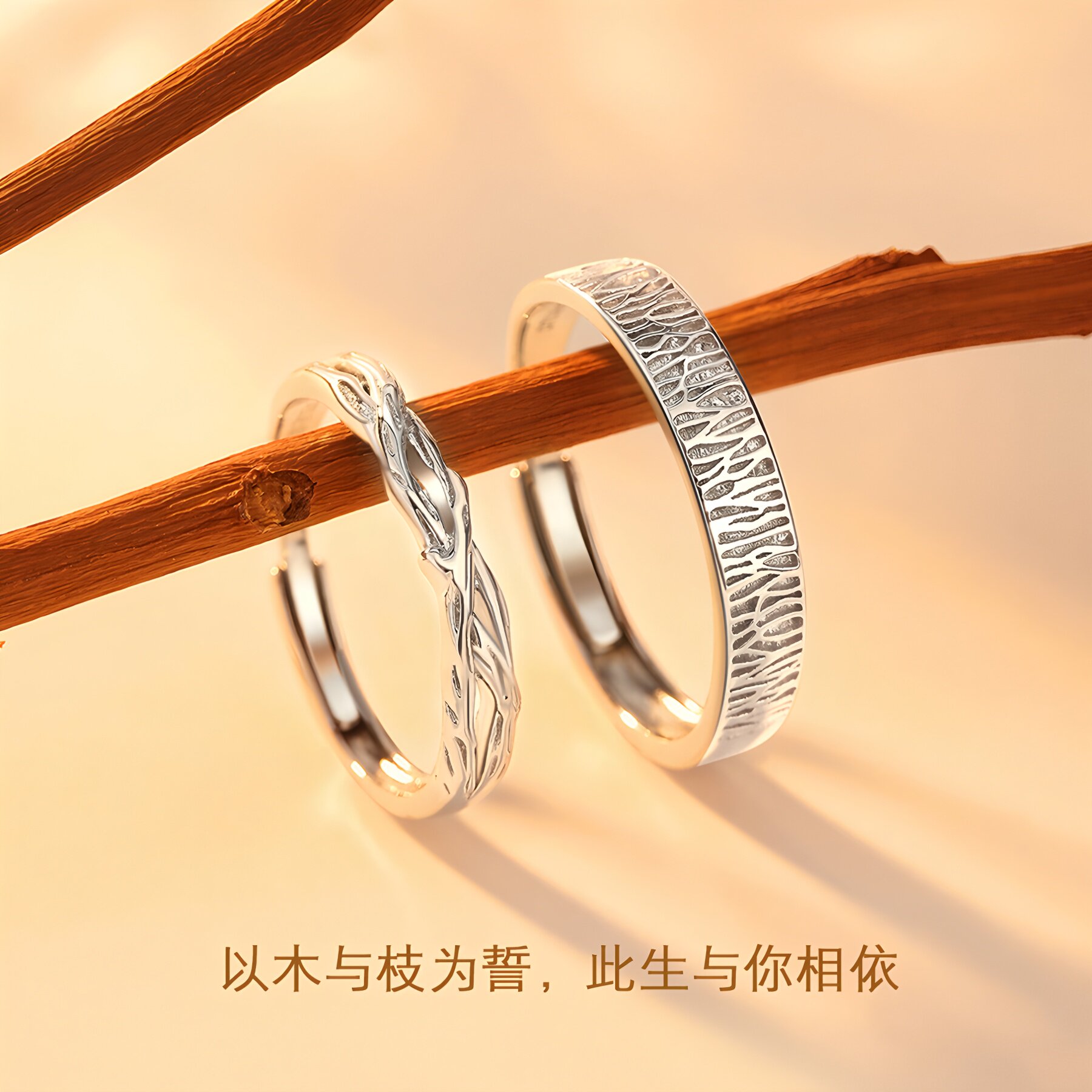 木与枝情侣戒指999足银男女款一对小众设计对戒生日礼物免费刻字