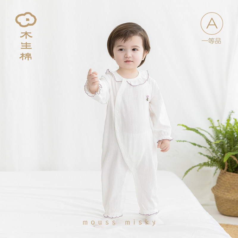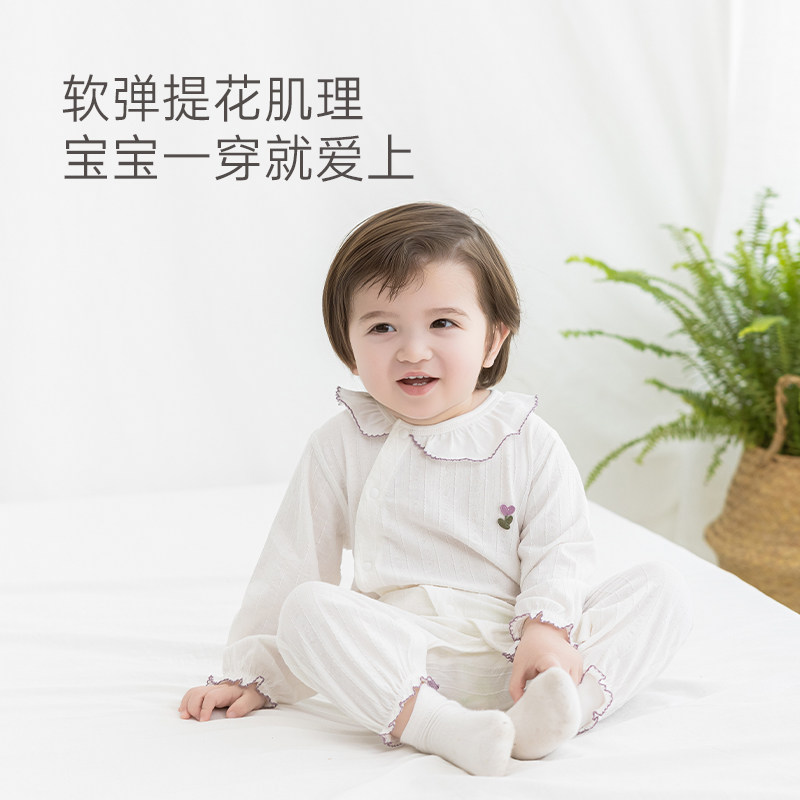 木生棉婴儿长袖连体衣夏季薄款女宝宝透气提花可爱哈衣空调服睡衣