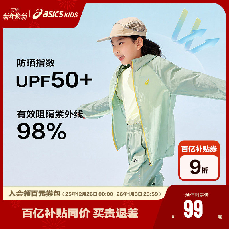 ASICS/亚瑟士童装25年夏新款男女UPF50+冰蝉翼防晒服梭织透气外套