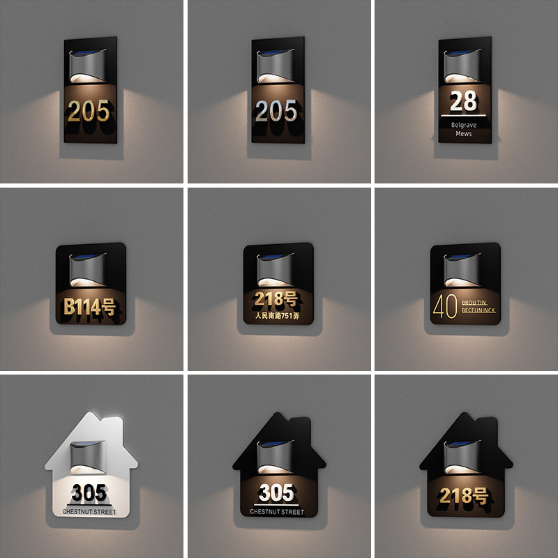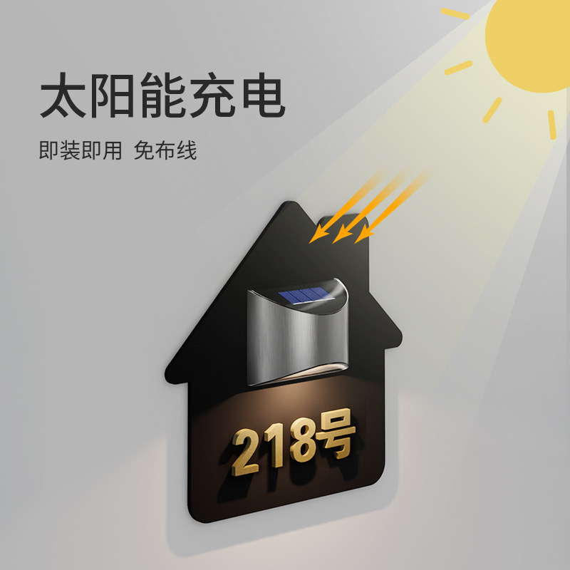 太阳能门牌号别墅小区家用入户门号码牌定制室外露营民宿酒店房间号牌门口指示牌不用接电防雨灯牌自动亮灯
