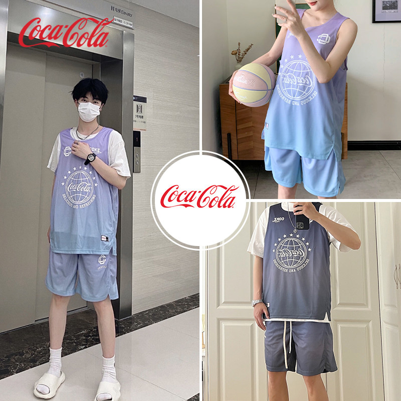 Coca-Cola/可口可乐 夏季美式背心短裤男渐变印花运动篮球服套装