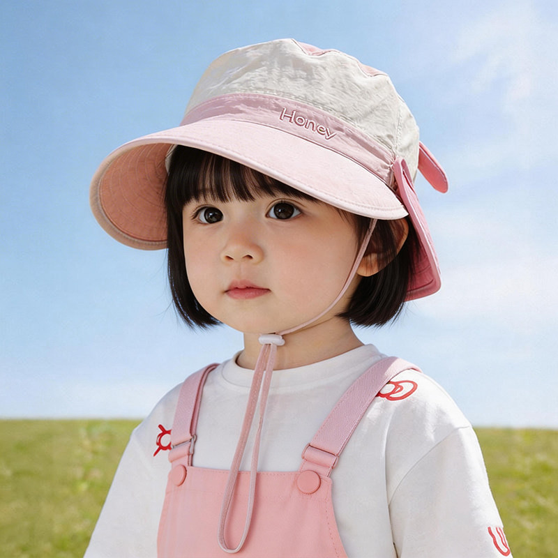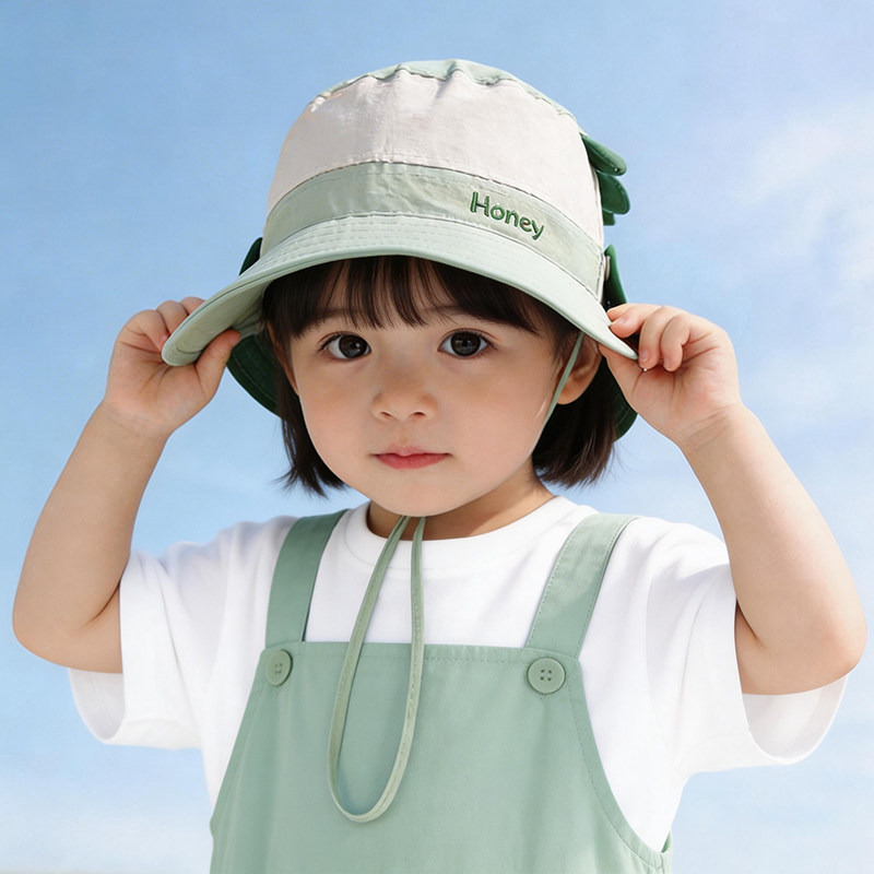可拆儿童防晒帽女童帽子宝宝遮阳帽夏季速干薄款男童渔夫帽春秋款