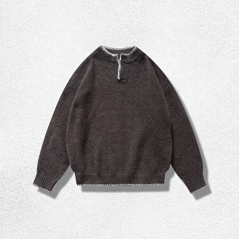 AGITOMADE「美利奴羊毛混纺」松弛感手缝线亨利领套头针织衫毛衣