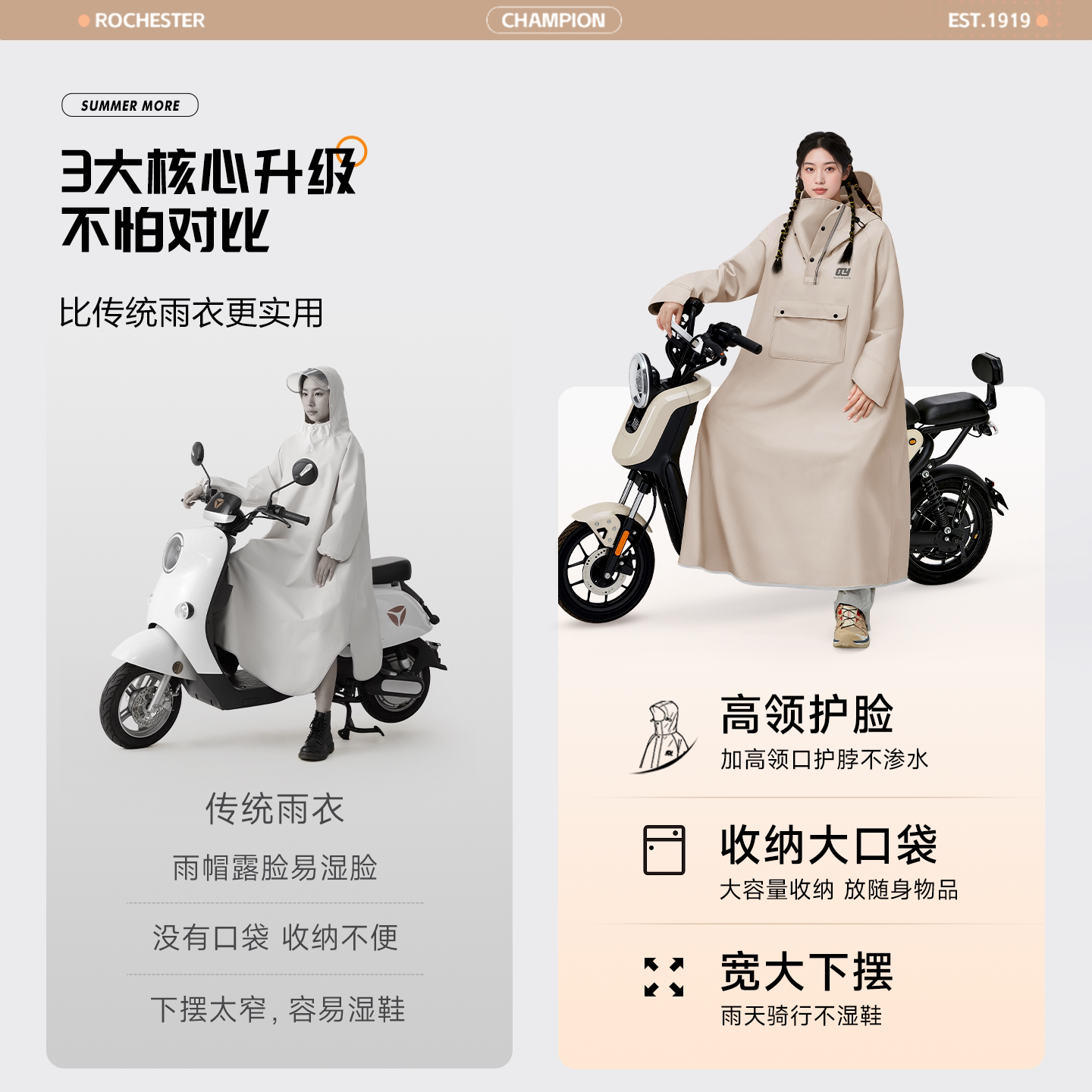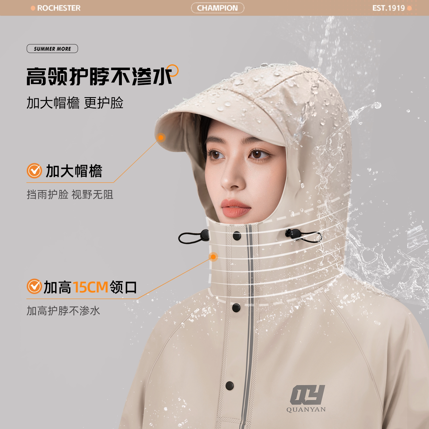 高领护颈不湿脸+加大下摆不湿脚+全网热销