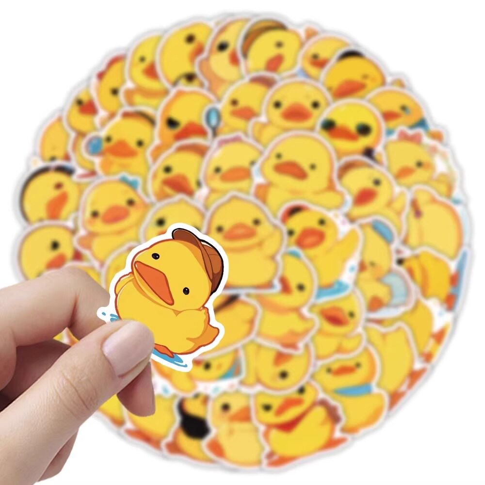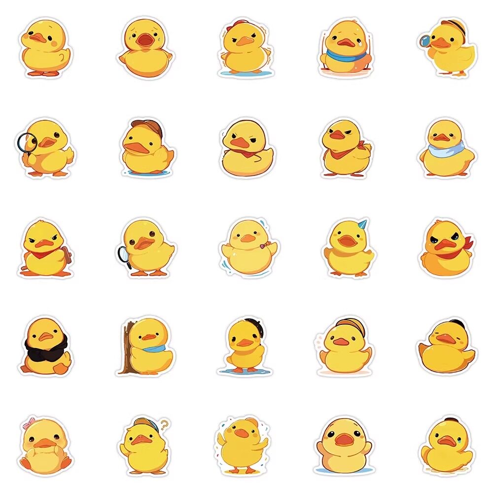 54张小黄鸭卡通贴纸可爱鸭子梦核二次元可爱猫咪标签装饰手账防水