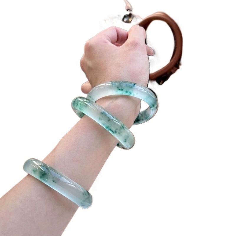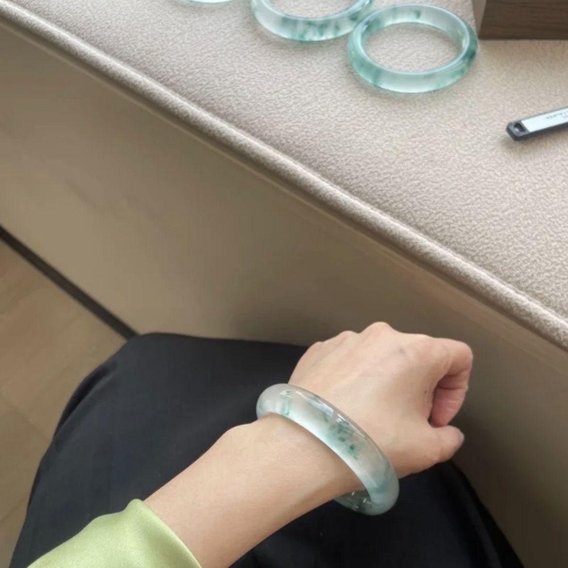 高冰飘花岫玉翡翠平替玉石手镯高档珠宝女款翡翠手镯冰飘花镯子