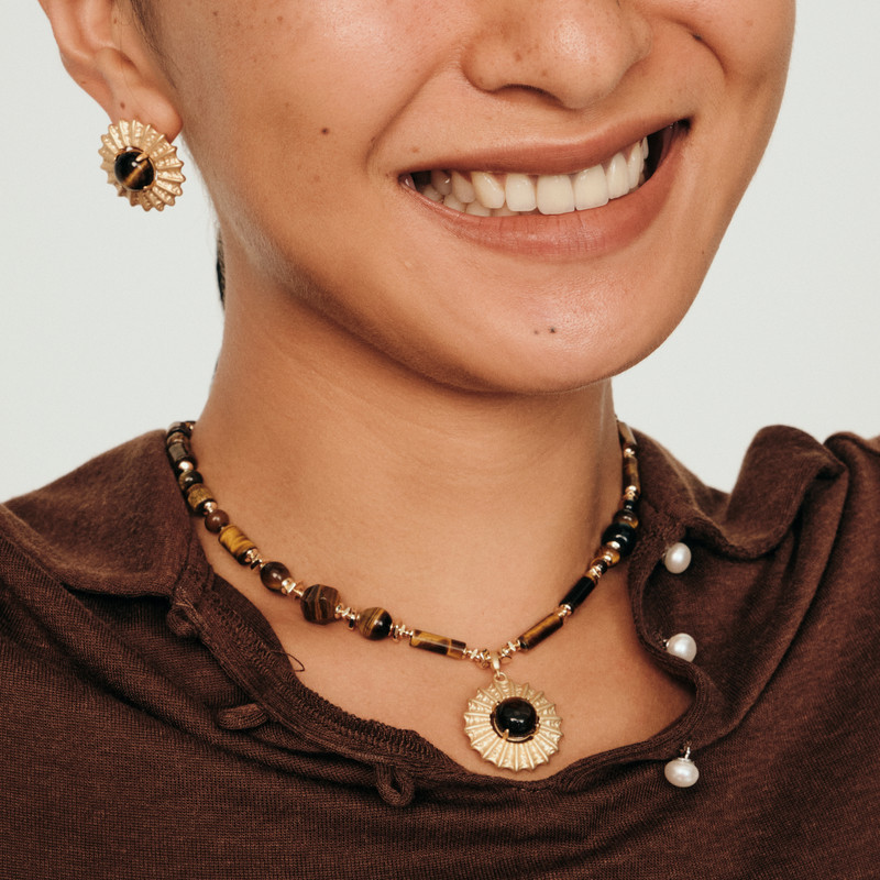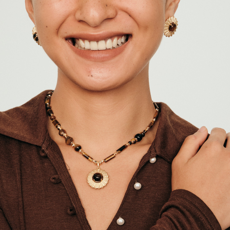 马君妍同款lost in echo春夏新款异域复古虎眼石玛瑙吊坠锁骨项链