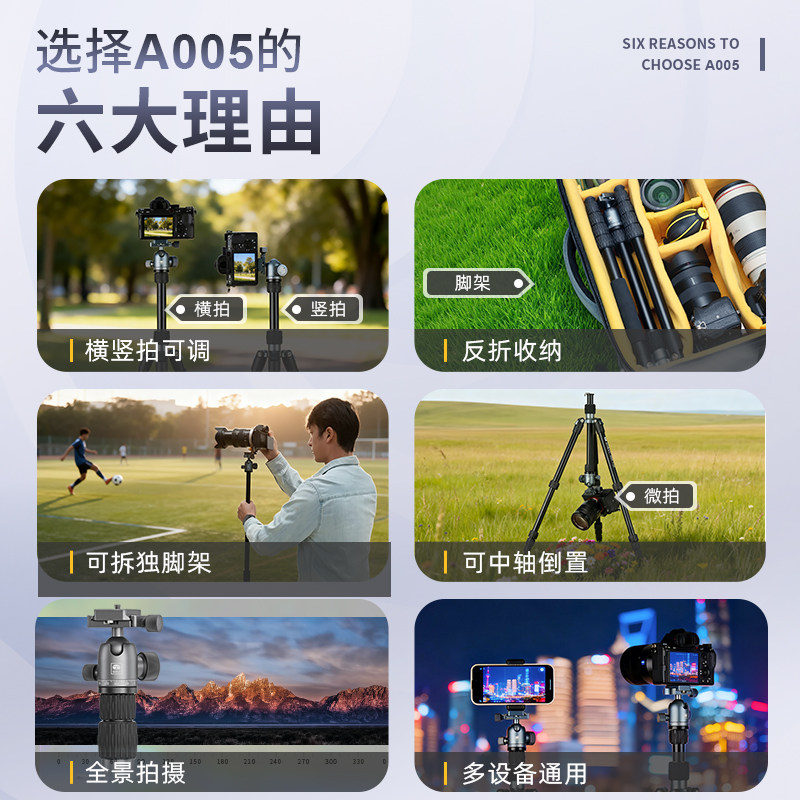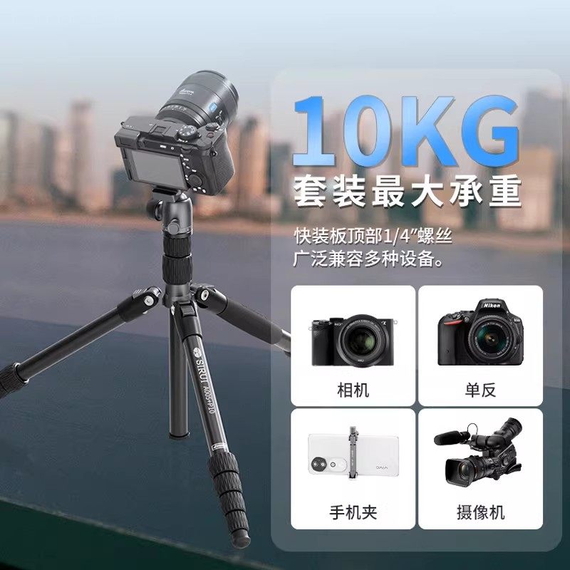 思锐A005单反三脚架照相机微单专业摄影摄像便携三角架手机自拍支架旅行短视频云台A1005套装可反折变独脚架