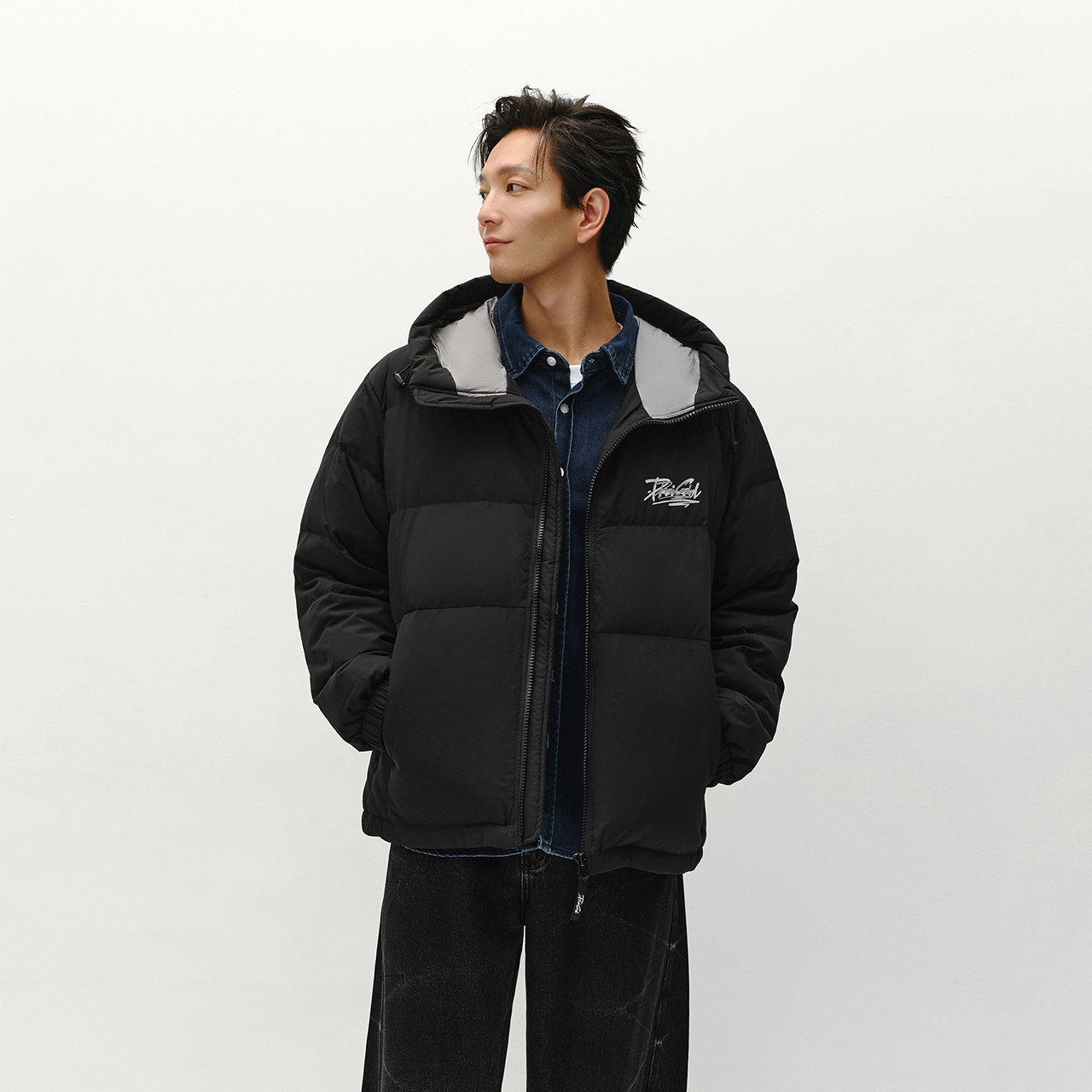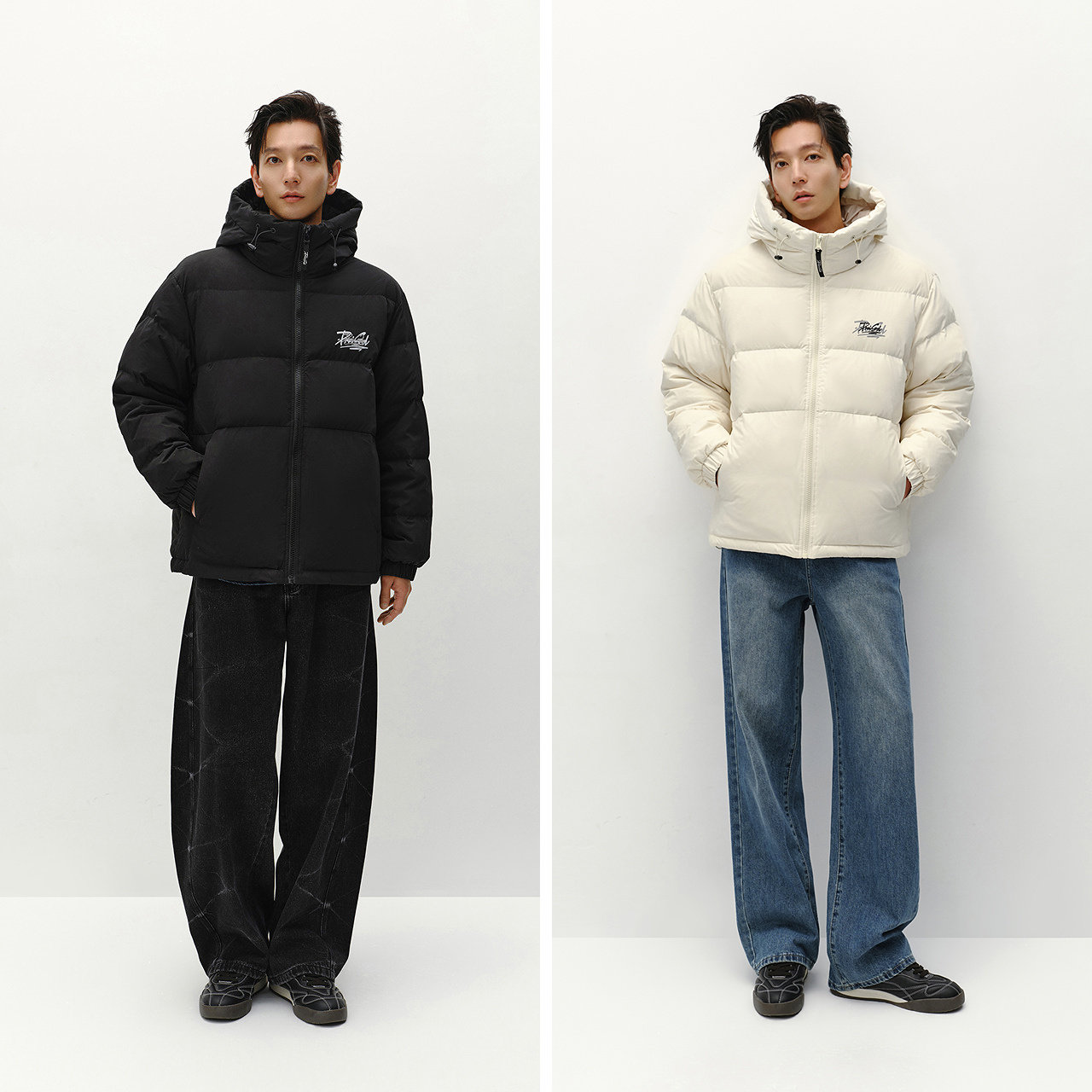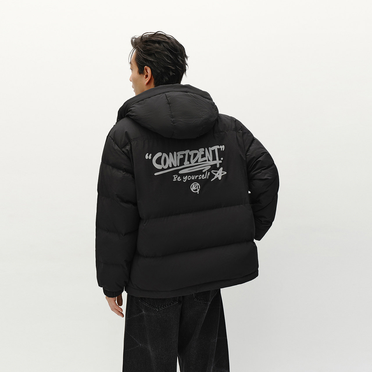 宽松连帽羽绒服 街头潮流印花外套
