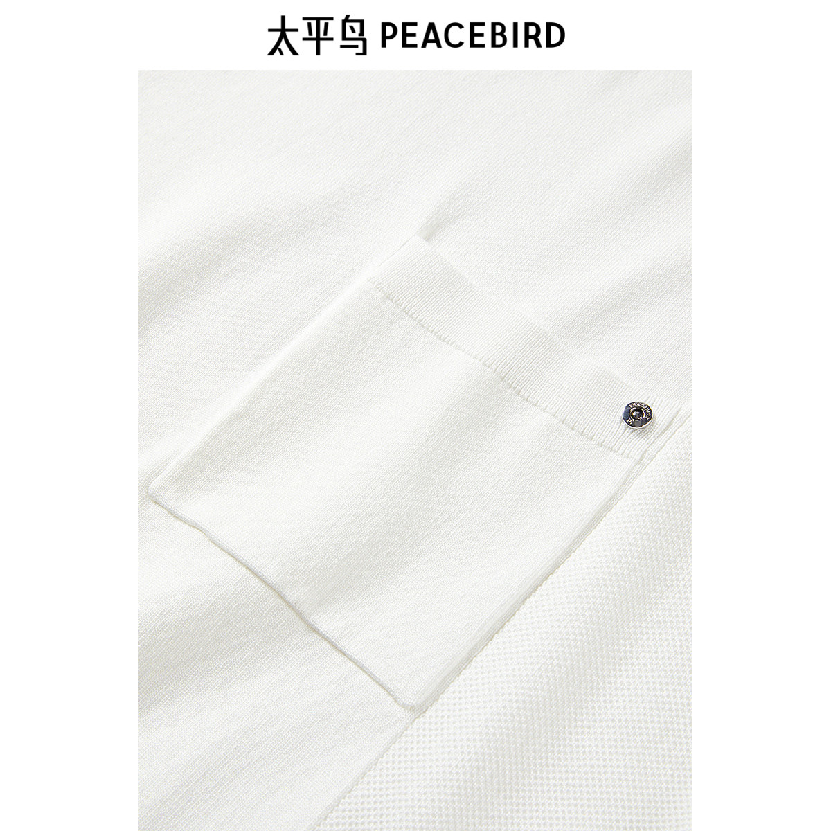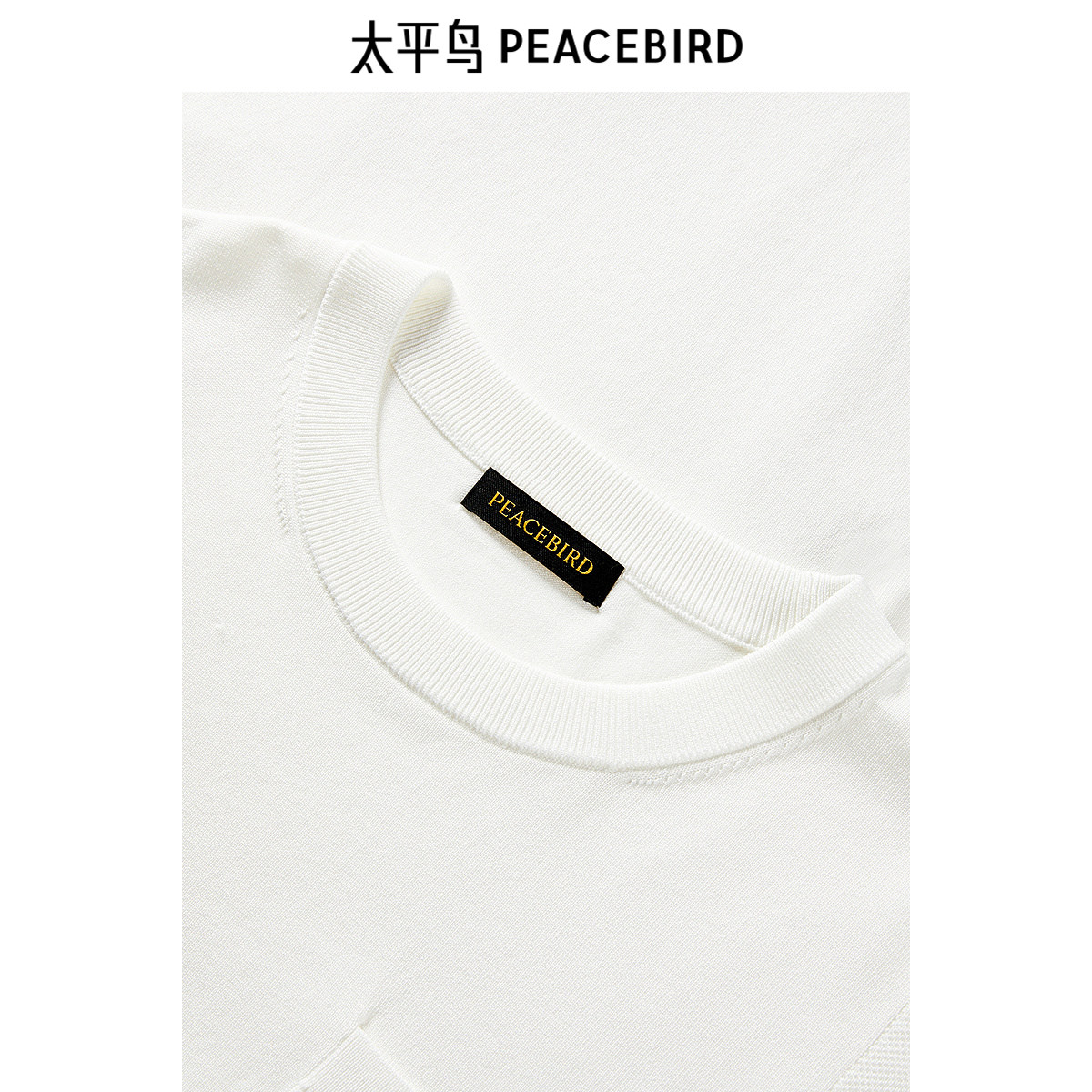 太平鸟男装针织口袋T恤秋季宽松纯色质感白色短袖时尚体恤衫