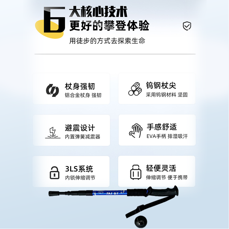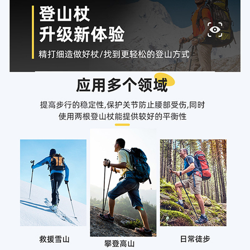 登山杖户外超轻伸缩杖男女爬山徒步装备防滑多功能老人拐杖