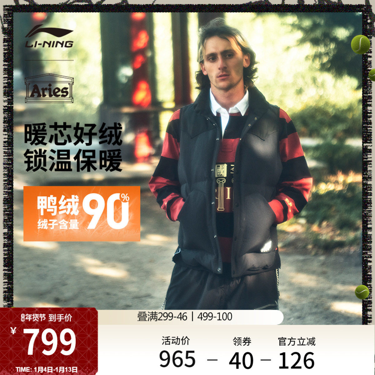 中国李宁Aries联名系列羽绒马甲男士官方新款男装上衣冬季运动服