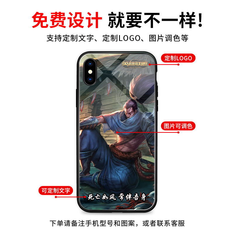 英雄联盟LOL手机壳定制卡莎亚索盲僧玻璃适用iPhone16ProMax苹果15华为Mate70小米15OPPO荣耀90vivoX90一加13