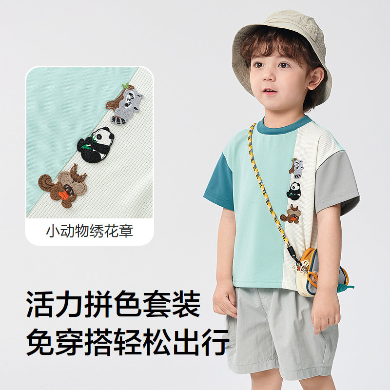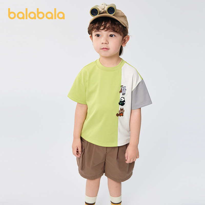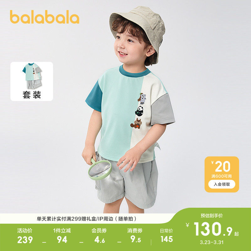 巴拉巴拉童装儿童短袖套装男童两件套2026夏休闲拼色时尚百搭洋气