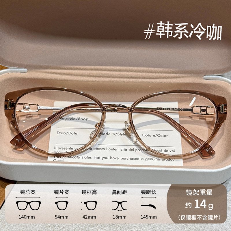目戏冷茶色眼镜近视女专业可配度数可选防蓝光镜片眼镜框镜架5018
