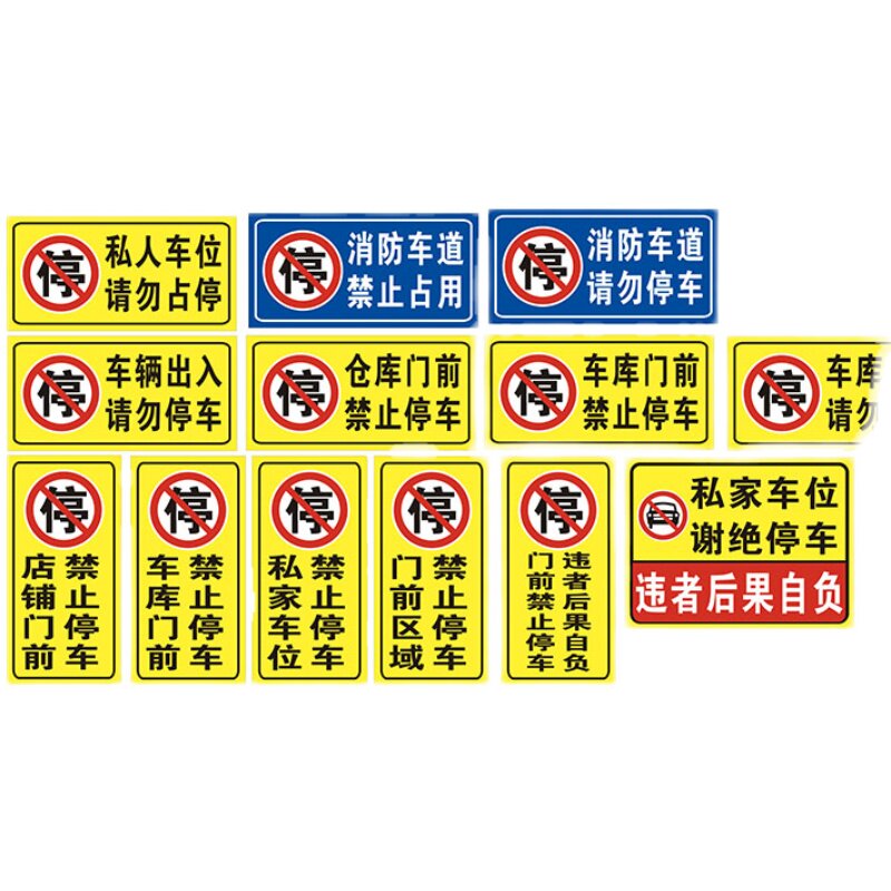 门口禁止停车警告牌仓库车库门前请勿占停私家车位消防车道告知牌