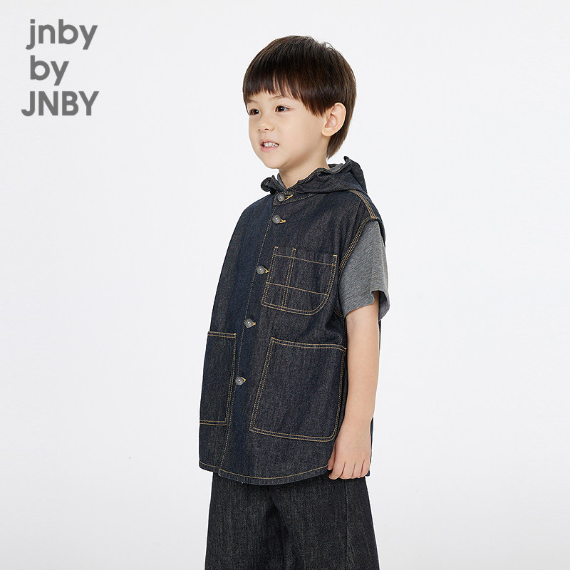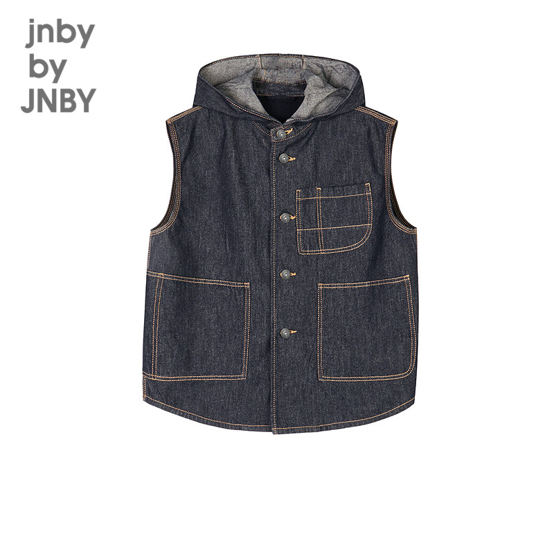 江南布衣童装马甲可爱无袖戴帽领纯色连帽牛仔春男童jnbybyjnby