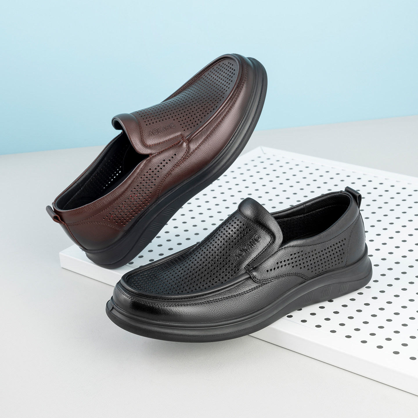 奥康 男鞋2026夏季新款透气一脚蹬豆豆鞋打孔商务乐福鞋门店发货