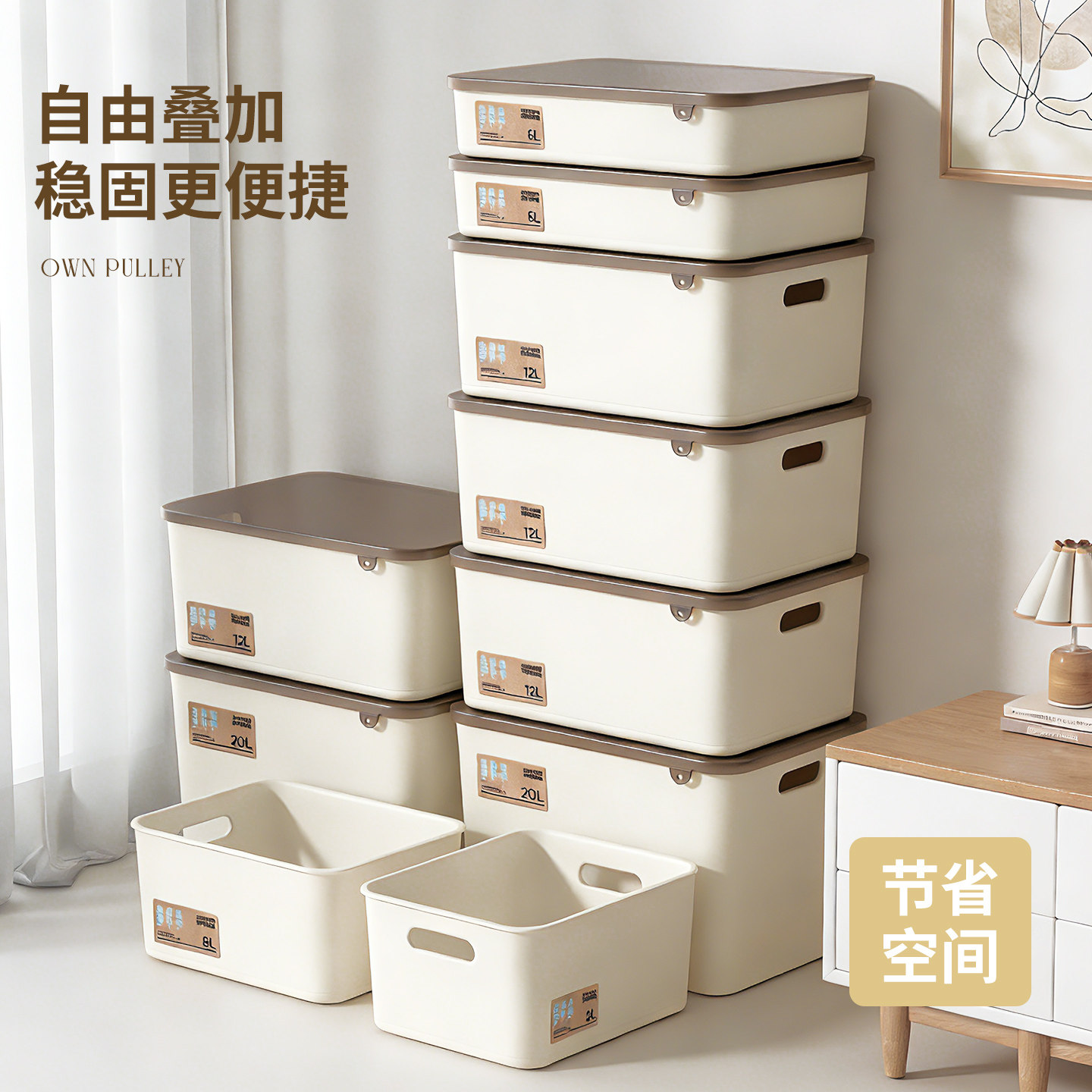 百草园桌面收纳盒带盖置物储物盒长方形塑料小杂物厨房零食收纳箱