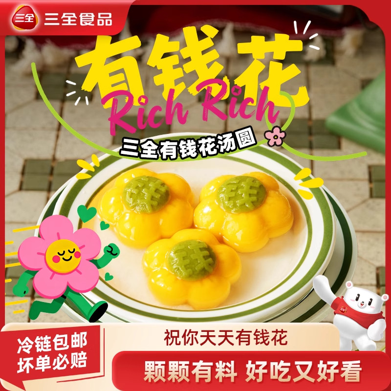 三全汤圆有钱花黑芝麻汤圆元宵早餐速食花朵造型汤圆水煮圆子