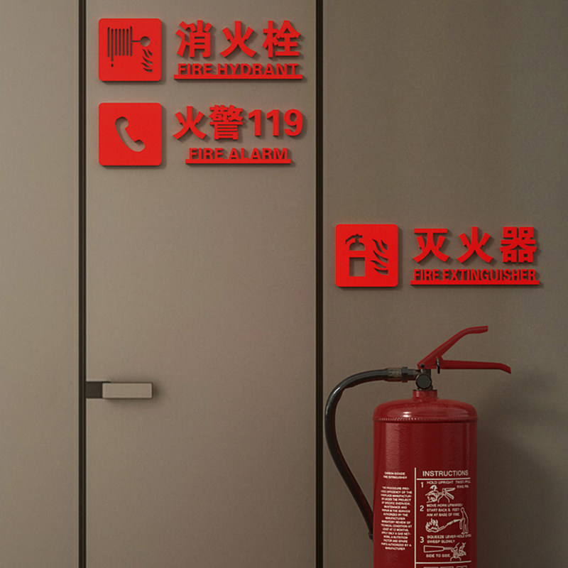 消火栓标识牌室外消防栓贴纸亚克力柜门金属立体字标志高级酒店宾馆商场灭火器安全使用方法119火警标牌定制