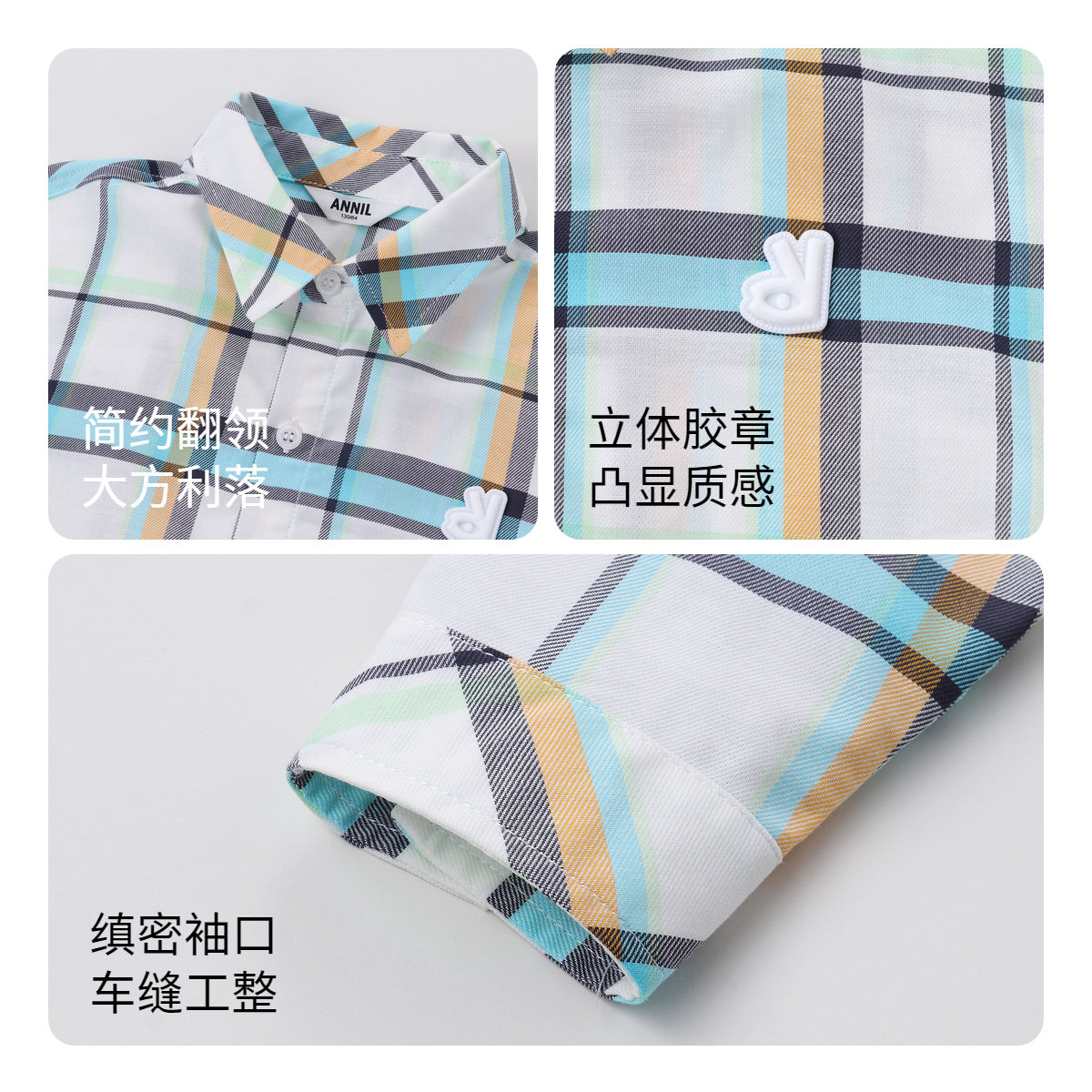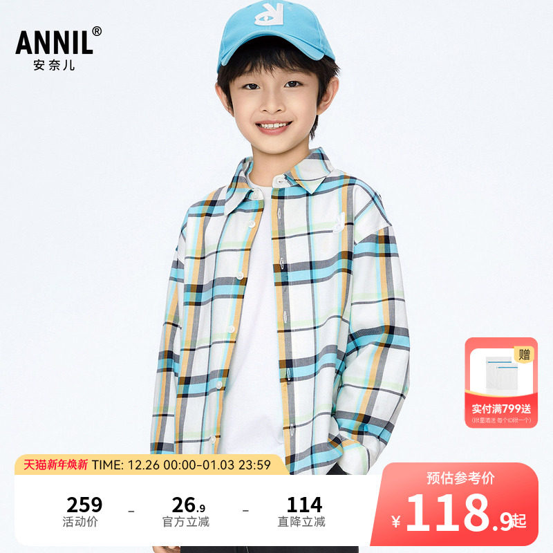 【商场同款】安奈儿童装男童衬衫秋时尚简约格子AB411523