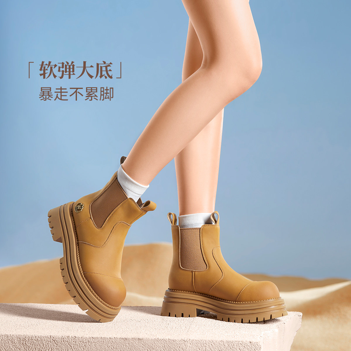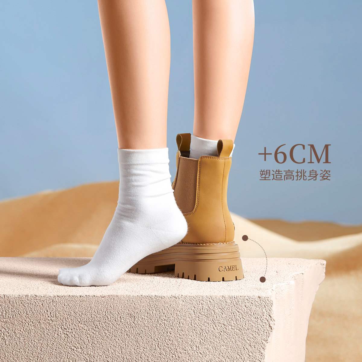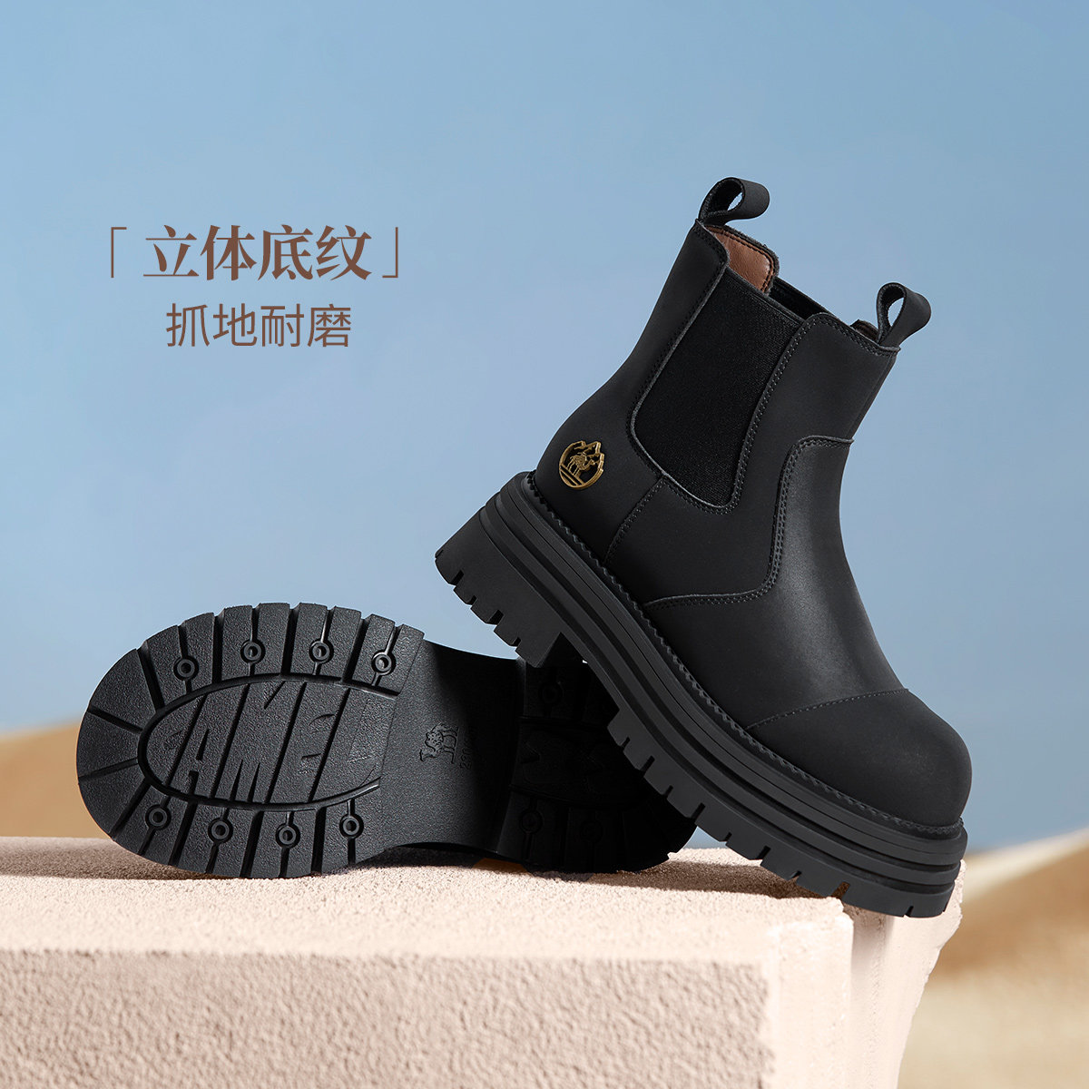 骆驼女鞋2025冬季新款休闲户外保暖加绒高帮女鞋厚底增高切尔西靴