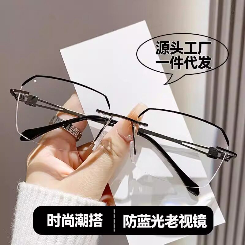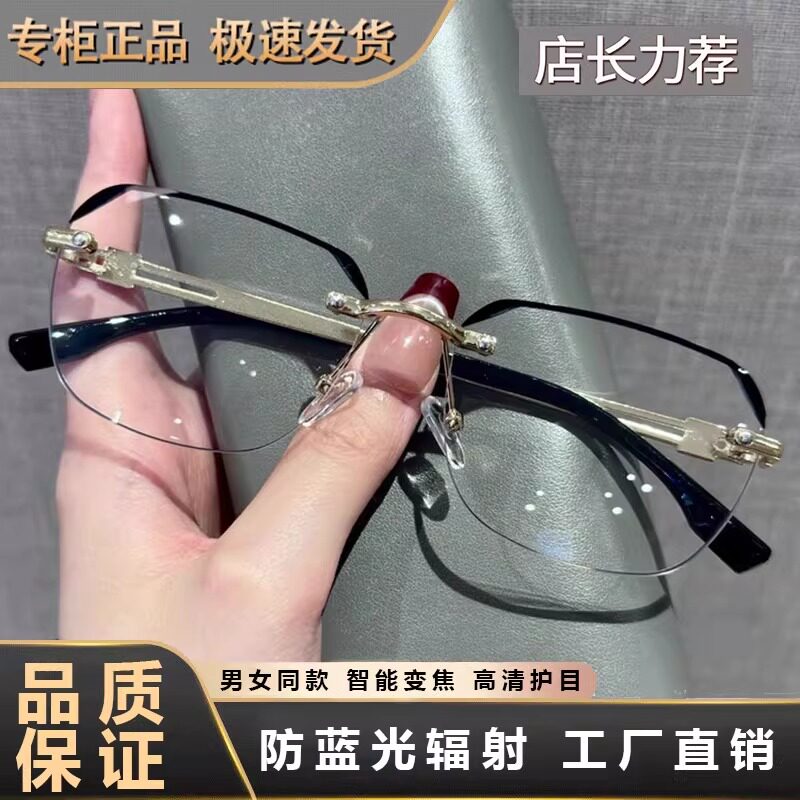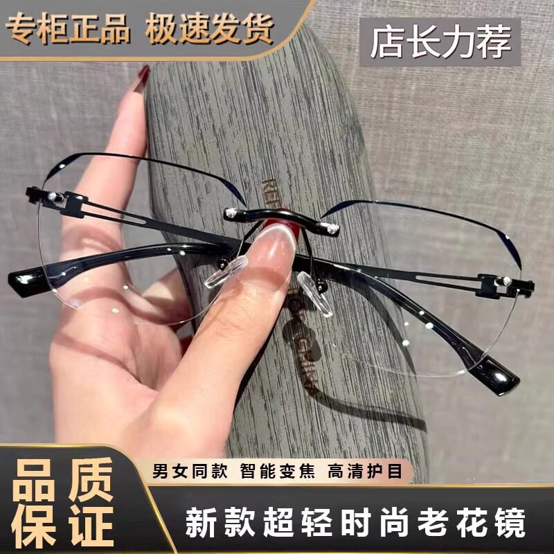 商务无框设计百搭老花镜男高清防蓝光智能变焦度数舒适老花眼镜